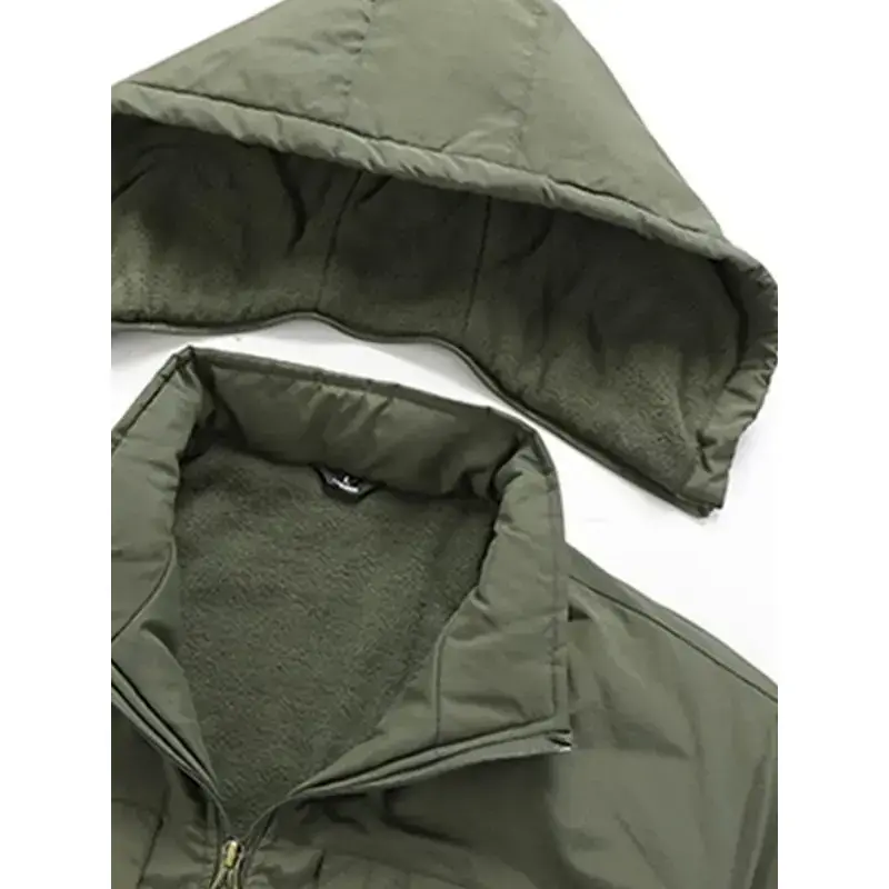 【Windproof Protection】: Equipped with windproof fabric, this jacket shields you from cold gusts, making it reliable for winter outings. 【Water Resistance】: The outer layer is designed to repel water, ensuring you stay dry during unexpected rain or snow. 【Thermal Insulation】: Featuring a thickened fleece lining, this jacket provides substantial warmth for chilly winter adventures. 【Multi-functional Pockets】: Multiple pockets offer ample storage options for essentials, combining functionality with an organized look. 【Fitted Cut】: The fitted structure provides a tailored appearance, allowing ease of movement without excess bulk.