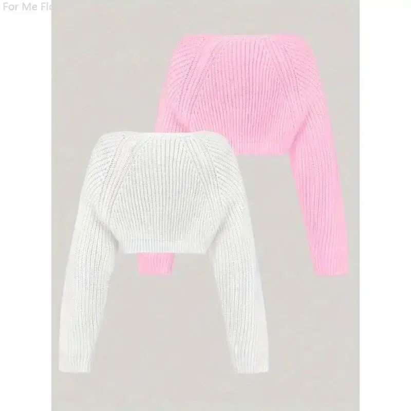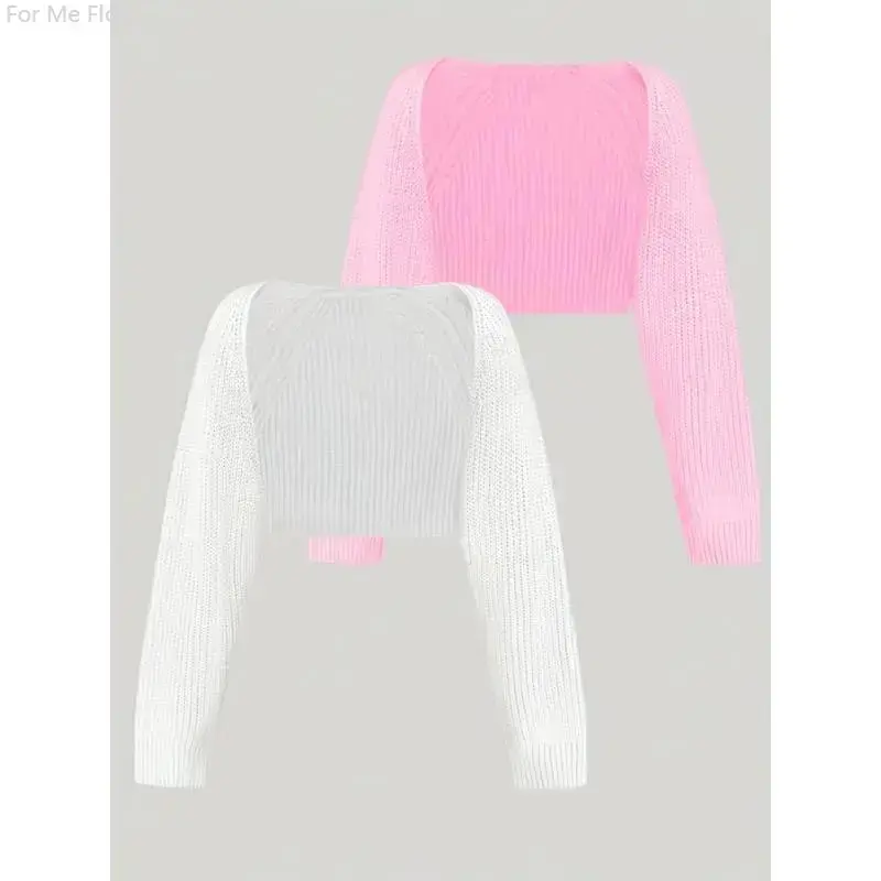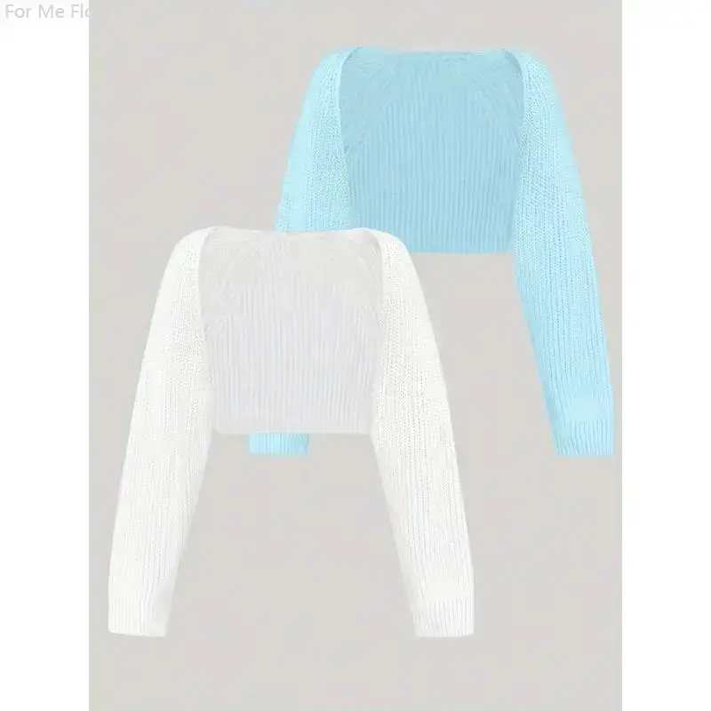 Solid Color Knit Crop Cardigan 2 Packs, Elegant Long Sleeve Shrug For Spring & Fall, Women's Clothing