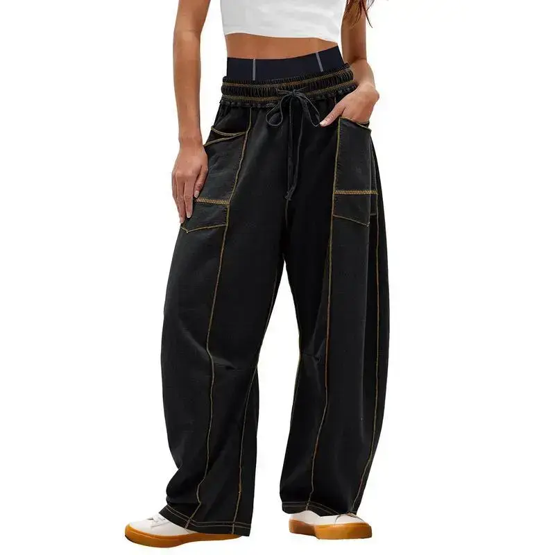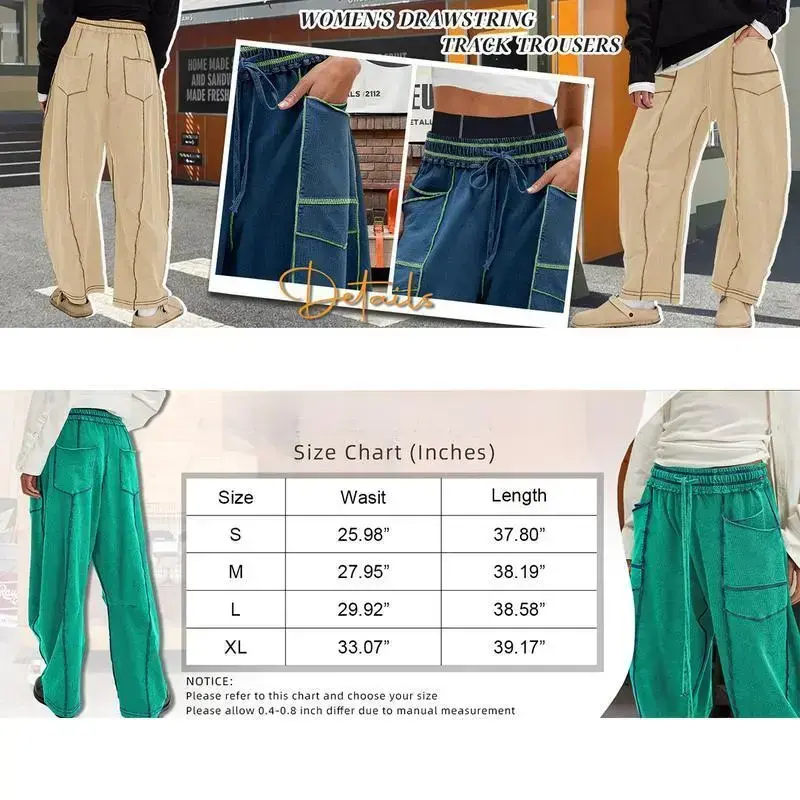 Womens Baggy Barrel Pants Wide Leg Lounge Drawstring Sweatpants with Pockets Womenswear Bottom Women's Loose Capri