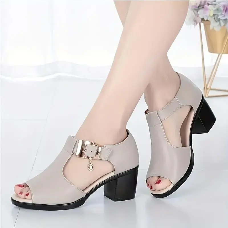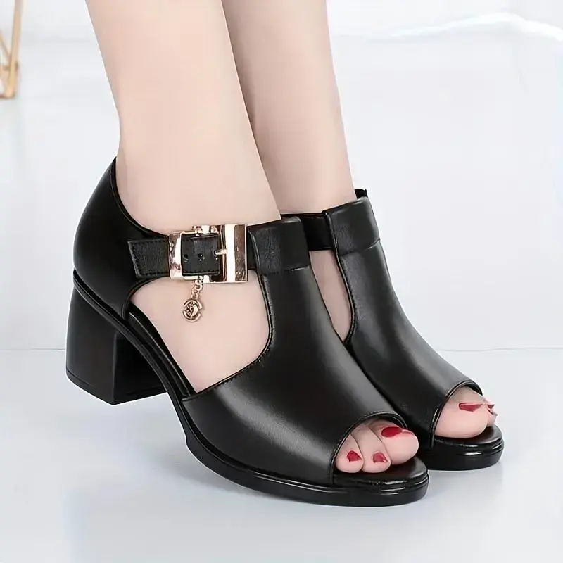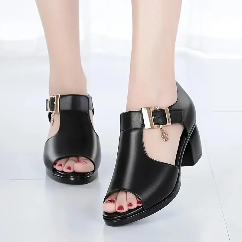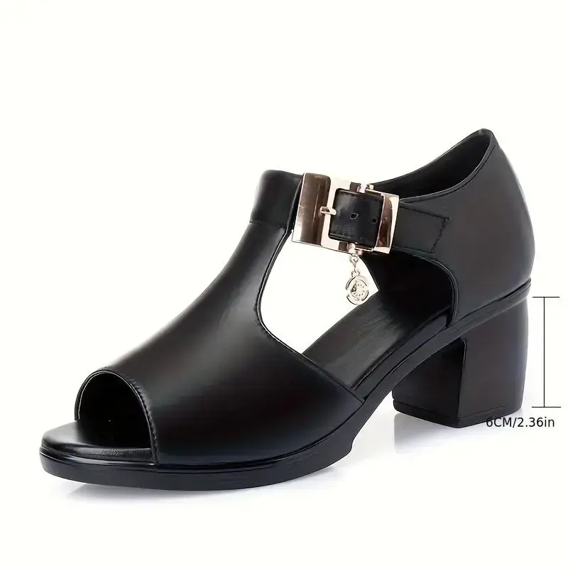 Women'sBlackOpen-ToeChunkyHeelSandals-ElegantAnkleStrapSlingbackShoes,PUFinish,PerfectforSummerFootwearGirlTacticalWeight
