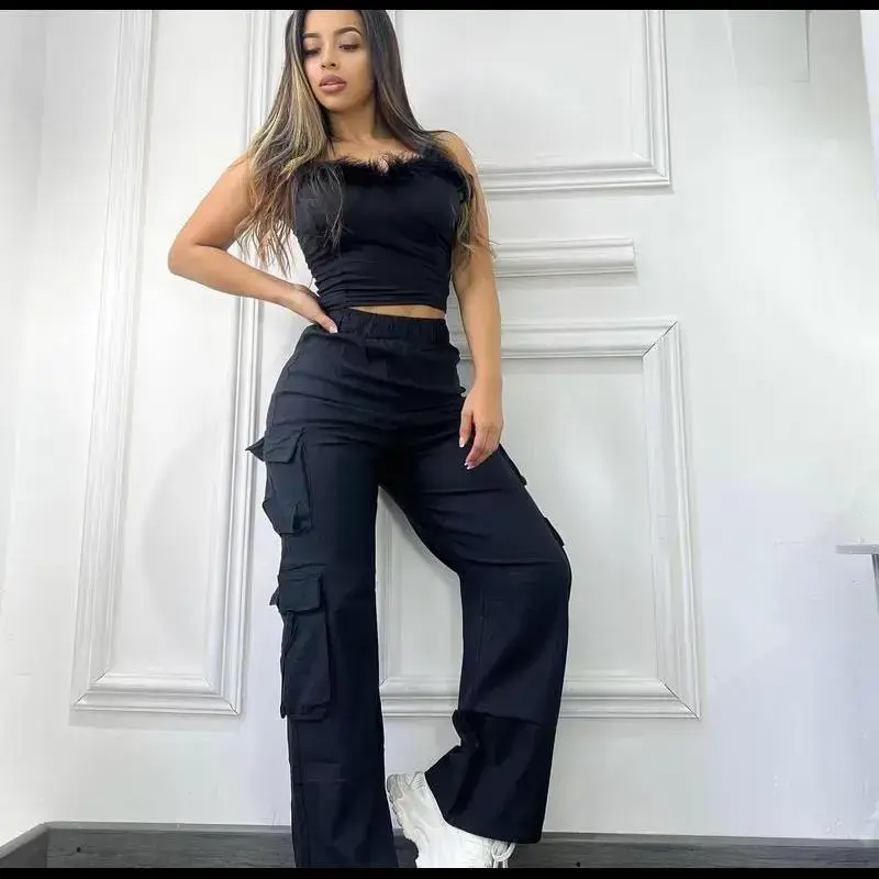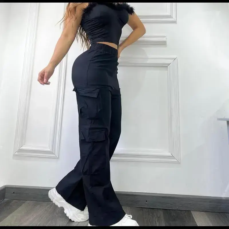 Casual Cargo Pants for Women - 2025 Fashion Multi-Pocket Solid Color Long Pants - Street Style - Women's Streetwear Cargo Pants