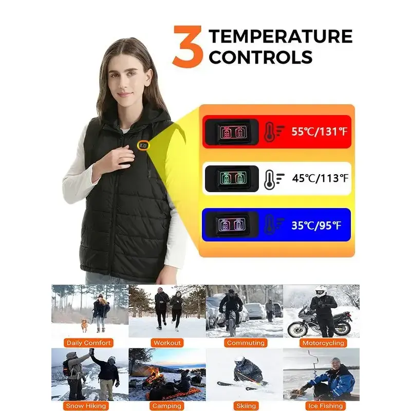 ·【15 Heating Sheets and 3 Temperature Controls】Newly released 2025 Norwell Heating Vest has 15 heating pads with the latest carbon fiber design and imported high-quality TPU heating pads, which heats up fast. Front and back dual control heating,the heating areas are left abdomen, right abdomen, shoulders,back neck and the whole back, which helps to promote blood circulation and relieve muscle soreness in winter. Perfect for people who often have bone pain on cold or rainy days. ·【Washable Heated Vest】This sleeveless heated jacket is made of waterproof and windproof fabric on the outer layer, cotton material filling in the middle, plus 15-zone heating sheets to make the temperature last longer. The material is comfortable and skin-friendly, does not wrinkle easily, is easy to care for, and can be machine washed(need put into a laundry bag) or hand washed. ·【Extensive Use】- This heated body warmer is made of waterproof fabric, making it perfect for outdoor use such as motorcycles, mountain, camping, hiking, skiing, fishing, hunting and daily.It can be worn inside a coat or directly outside, stylish and warm. It is also a warm gift for elders, relatives and friends. ·【Care and Warranty】Norwell heated apparel is machine washable/hand washable. Before washing, remove the power supply, put the USB cable in the pocket and zip it. When machine washing, place the product in a laundry bag then start washing. We have a 1-year warranty, if you have any problems with the product, you can contact us at any time, we will provide you with considerate after-sales service, please rest assured to buy.