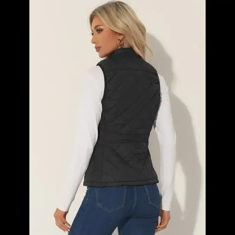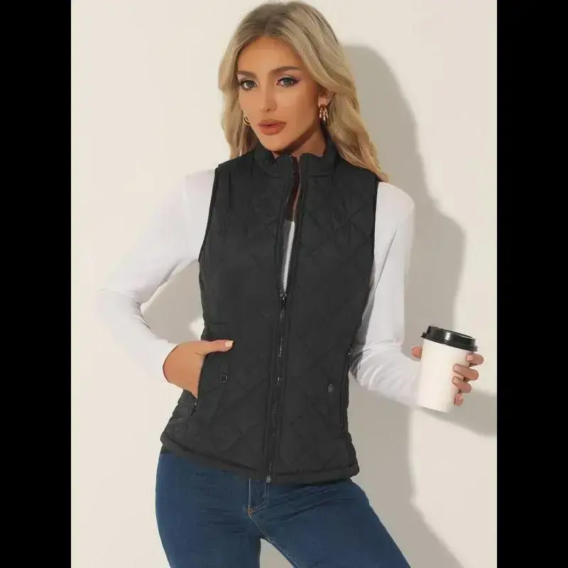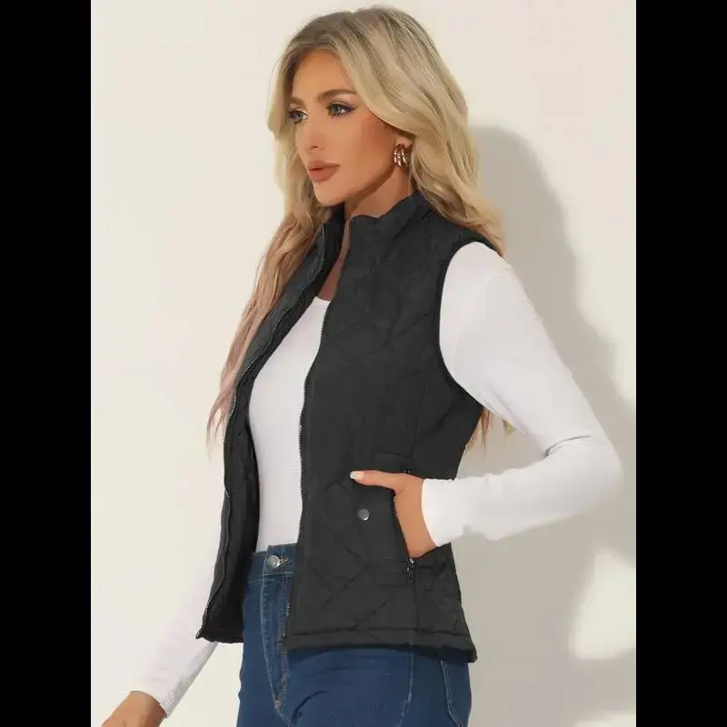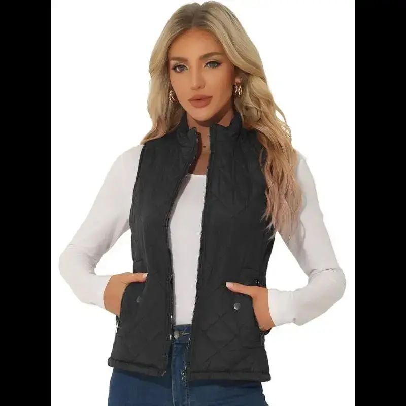 Bubble vest stand up collar lightweight vest quilted zipper vest black