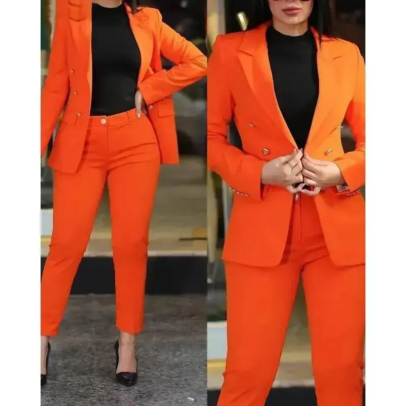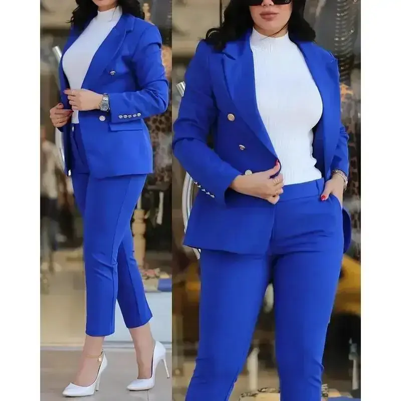 New 2025 Formal Office Pant Sets Women 2PCS Double Breasted Solid Blazers Jacket and Pants Two Pieces Set Female Pant Suits Sets