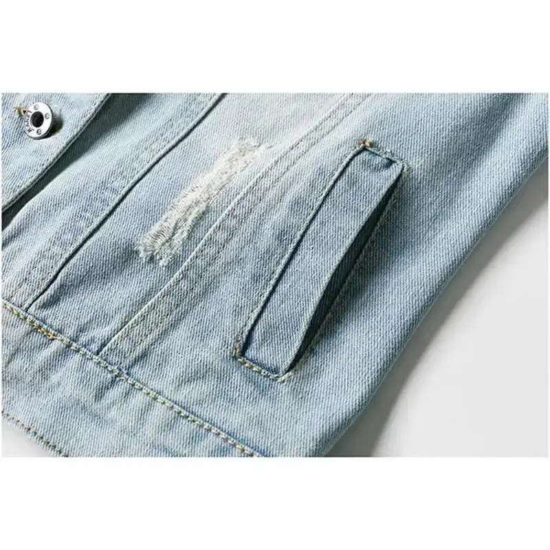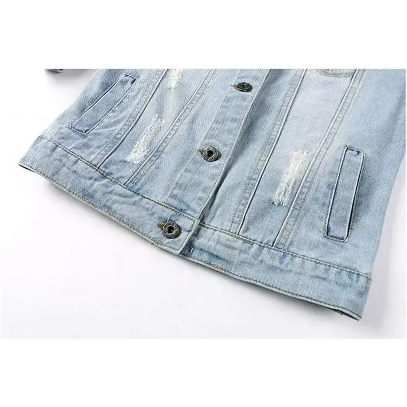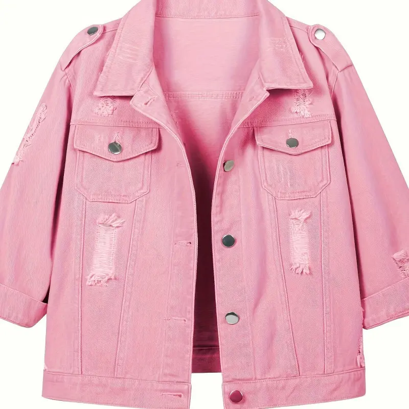 Hixiaohe Women's Spring Autumn 3/4 Sleeve Retro Short Denim Jackets Women's Jean Jacket Washed Button Up Cropped Denim Jacket With Pockets Great for casual, daily wear, lounge, work, parties in spring, summer, autumn. Array Women's 3/4 Sleeve Distress Slim Crop Denim Jean Trucker Jacket Detailed Pictures Display for Women's Denim Jackets Cropped Denim Jacket for Women