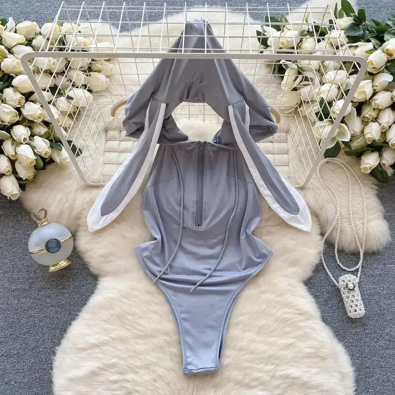 ?? Bunny Hoodie Bodysuit for Women Elegant Sleepwear Design: Easy to Wear: