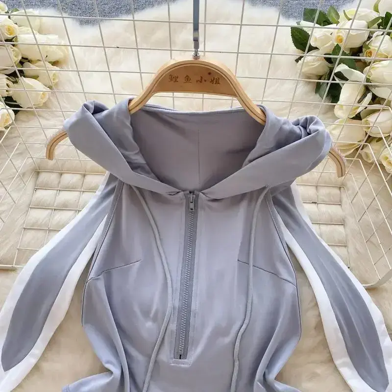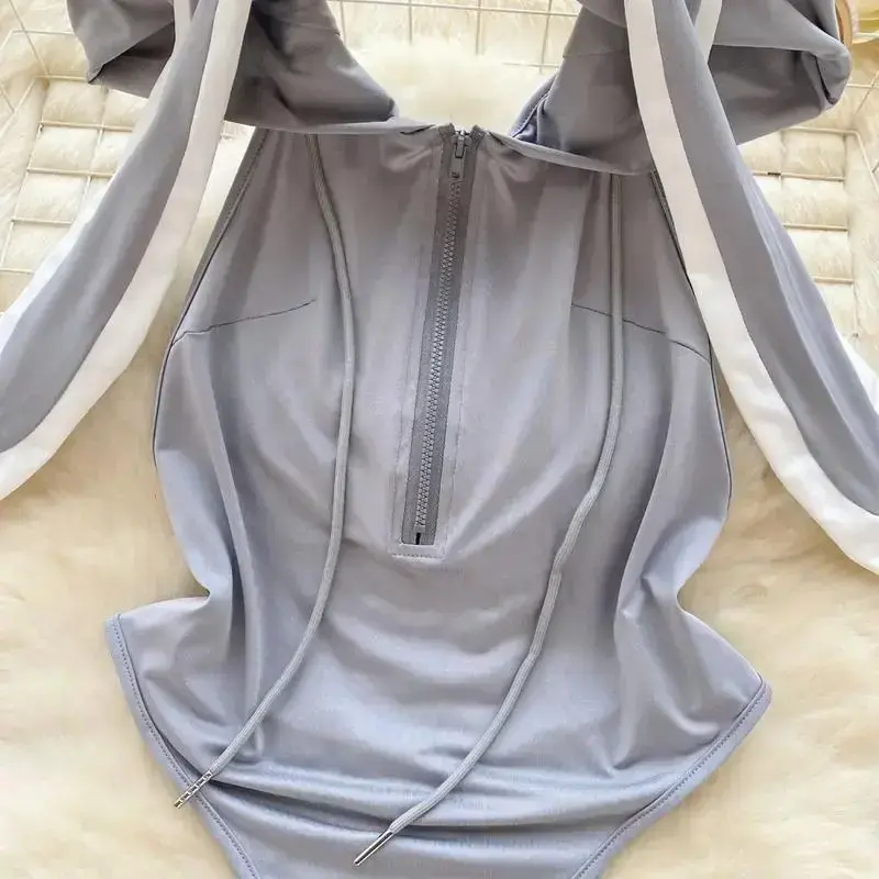 Women's hooded jumpsuit - backless jumpsuit with cute ears and hood design, medium size