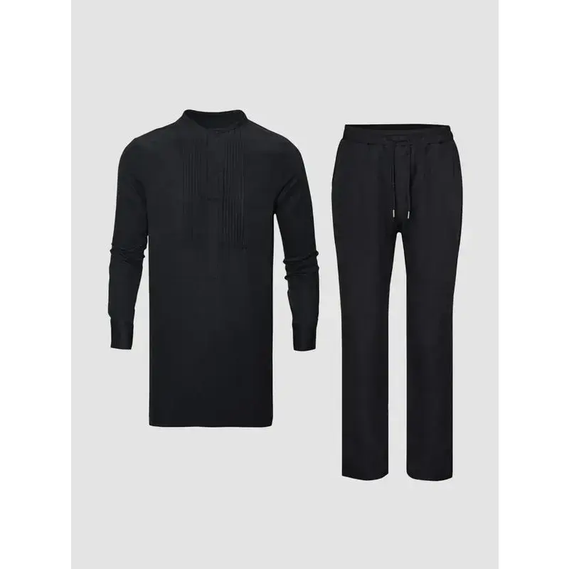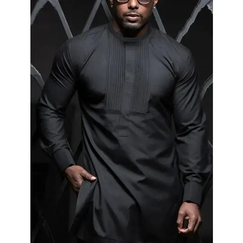 ?? Plus Size Men's Black Pleated Dashiki Set?? Elevate your wardrobe with this 2 pcs/set Dashiki for Men, perfect for casual outings and special occasions. This stylish outfit features a classic split design, ensuring comfort and a perfect fit. The set includes a long-sleeve shirt and elastic-waist pants, ideal for weddings, dates, and cultural events. ? Comfortable Fit: Regular fit with long sleeves. ? Stylish Design: Plain, pleated and snap button design create a standout look. ? Date Night Ready: Perfect for weddings, dates, and cultural activities. DETAILS: Add this unique piece to your collection today!