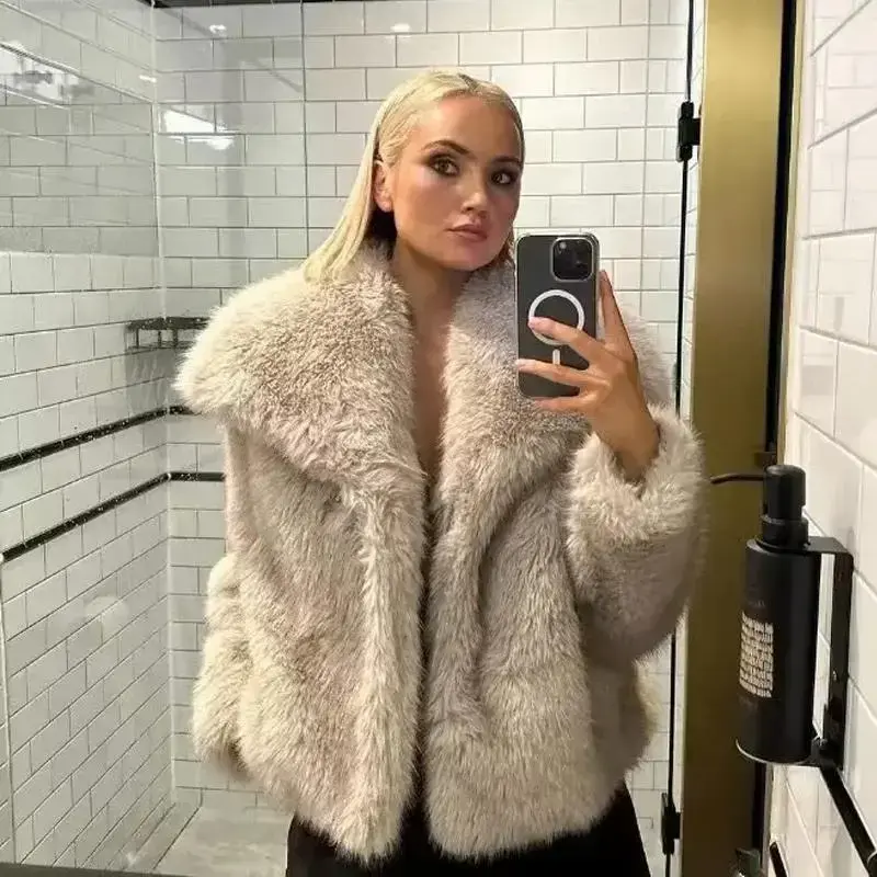 Women's Faux Fur Coat autumn Plush Wool Coats and Mixtures Outerwears Fashio Long Sleeve Warm Fur Coat54574 Womenswear Jackets