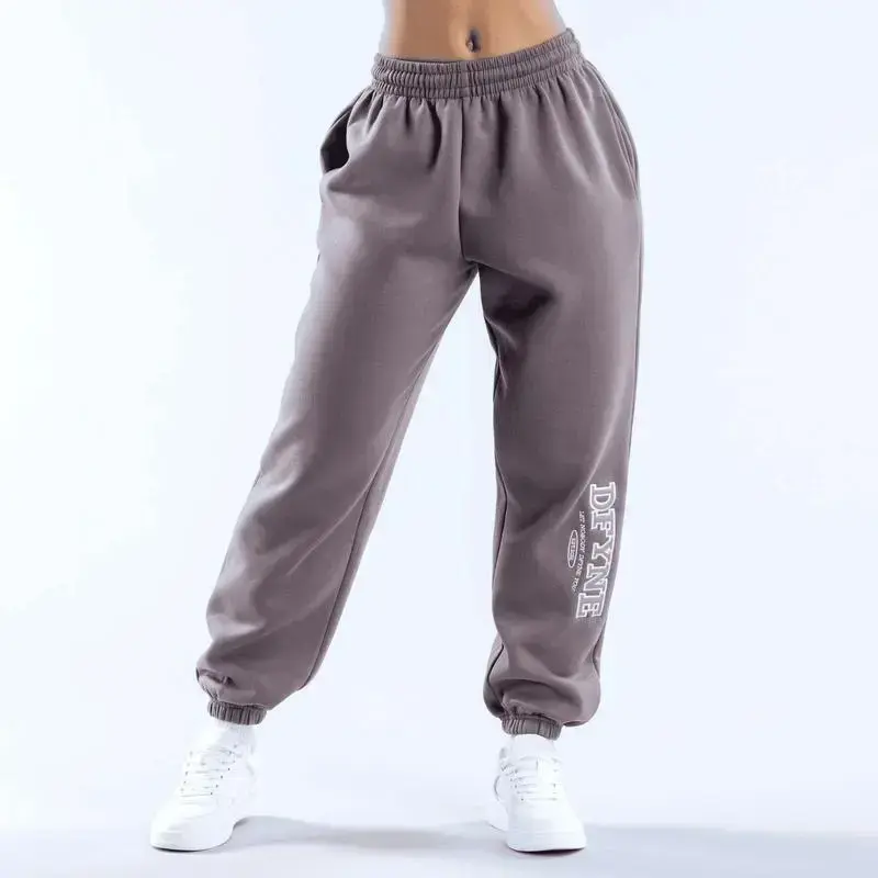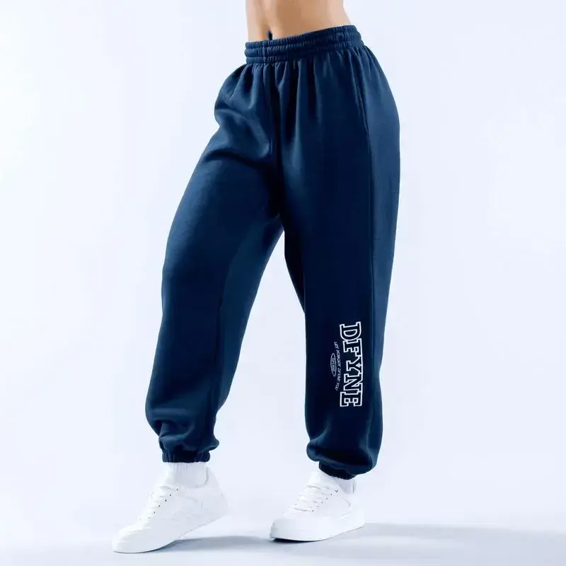 European And American Flat-Pack Sweatpants Sports Trousers Fashionable Casual Drawstring Waist Embroidered Letters Running Velvet Loose Pockets Fitness