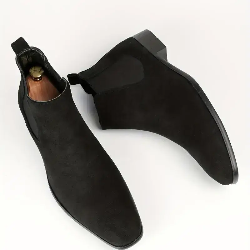 Wear-resistant Men's Chelsea Boots ✨ Elevate your style with these wear-resistant men's Chelsea boots! 🌟 Crafted from fabric upper and PU inner material, these boots offer durability and comfort. The PU insole ensures a soft step, while the PVC brine material adds to the overall structure. Perfect for business or office wear, these ankle boots feature an elastic band closure for easy slip-on convenience. Item ID: BY39122. These solid color ankle boots are ideal for everyday wear.