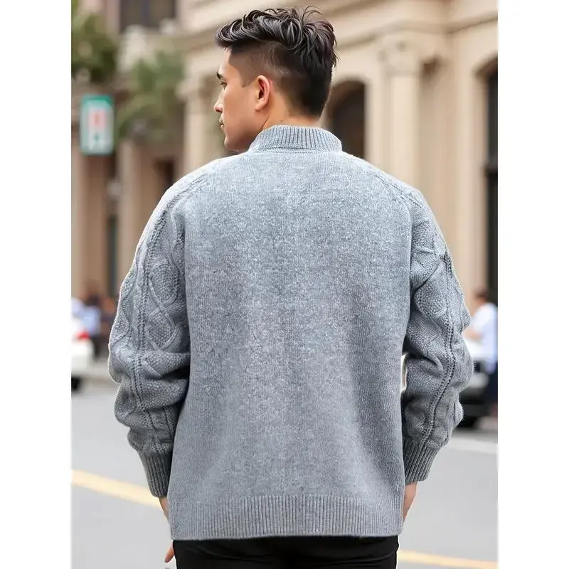 Men's casual sports sweater cardigan, thick knitted cardigan, made of thick wool, classic knitted pattern, single breasted, long sleeved loose, autumn and winter casual