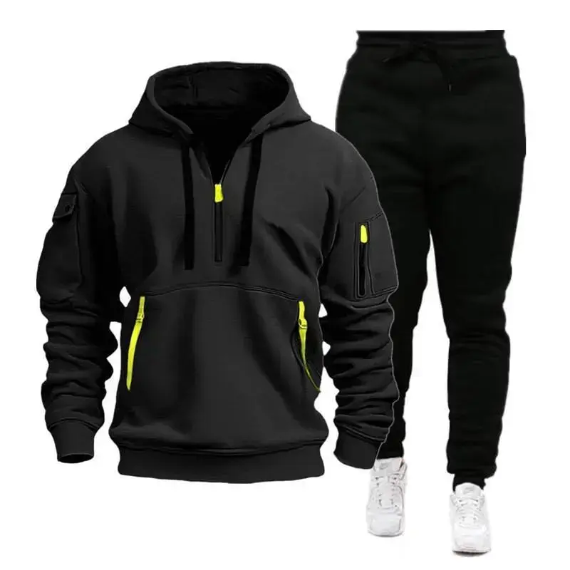 2025 Comfortable Casual Sports Hoodie Set Men with Multiple Pockets Zipper Hoodie Tracksuit Set Plain