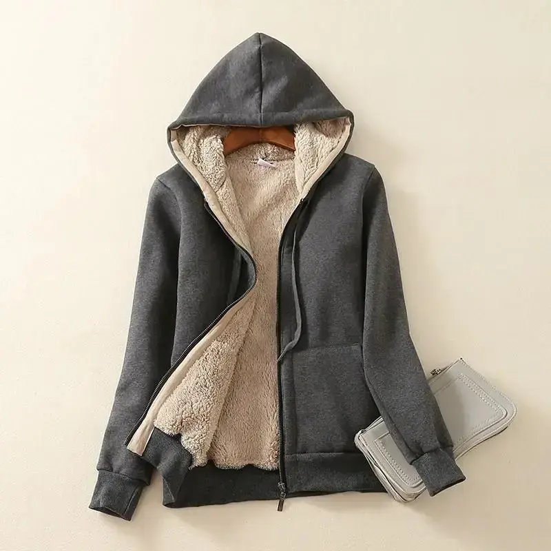 Women's Casual Full Zip Up Sherpa Lined Hoodie Sweatshirt Jacket Coat
