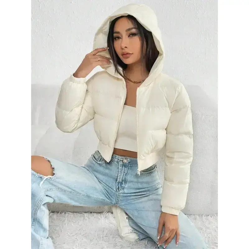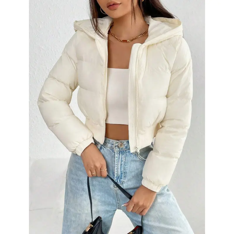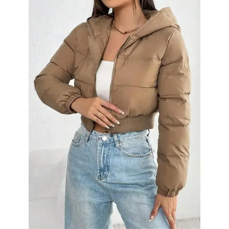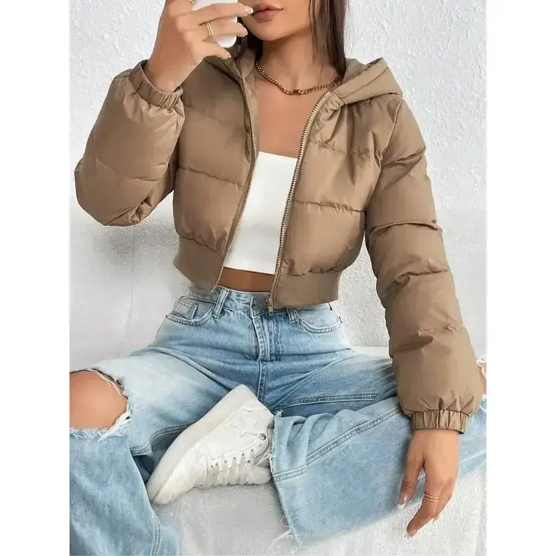 【Zipper Closure】: Equipped with a functional zipper, this coat allows for easy wear and removal, ensuring practicality during busy days. 【Hooded Feature】: The hood provides added protection against chilly winds, making it ideal for outdoor activities during fall and winter. 【Warm Fabric】: Crafted from a woven material, this coat offers insulation against lower temperatures, keeping you warm throughout cold seasons. 【Crop Length】: The short length of this coat allows for a modern silhouette that pairs well with high-waisted pants and skirts. 【Long Sleeves】: Featuring regular-length sleeves, this coat provides full arm coverage while allowing layering options underneath for added warmth.