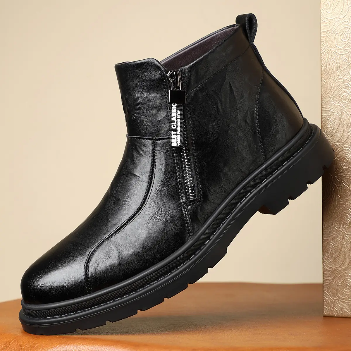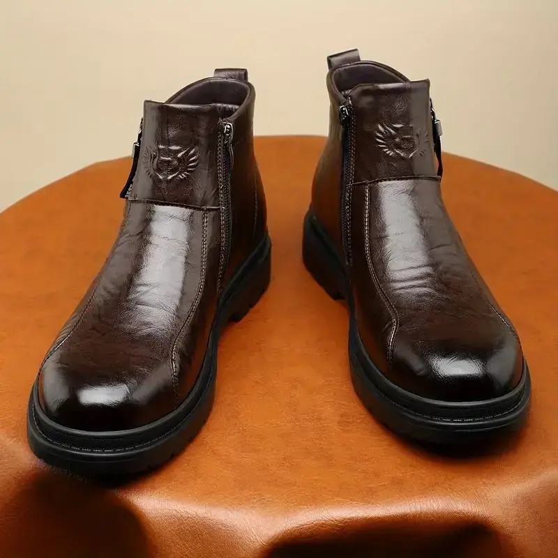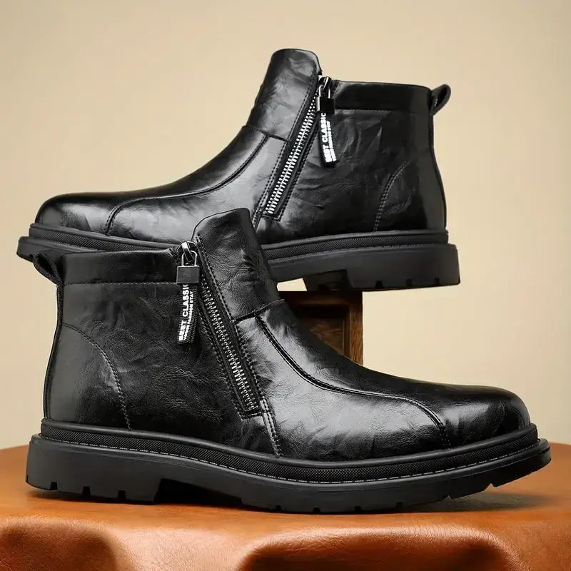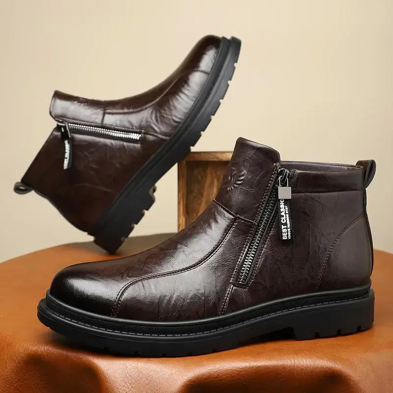 Men's Retro Solid Color Chelsea Boots with Zipper, Wear-Resistant Non-Slip Four Seasons Boots