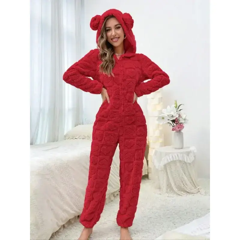 【Unique Hoodie Feature】: This onesie includes a playful hood with ears, adding a whimsical touch to your sleepwear collection. 【Thick Fabric】: Crafted from high-quality thick knit fabric, this outfit provides warmth during cold fall and winter nights. 【Fitted Silhouette】: Designed with a fitted cut, this garment flatters your shape while ensuring ease of movement throughout the day. 【Plain Pattern】: Featuring a minimalist plain pattern, this outfit offers a timeless look that complements multiple home settings. 【Long Sleeve Coverage】: Equipped with long sleeves, this onesie offers added warmth and coverage, perfect for cozy home relaxation.