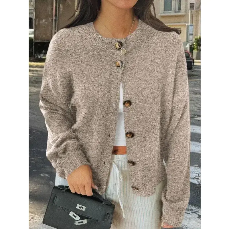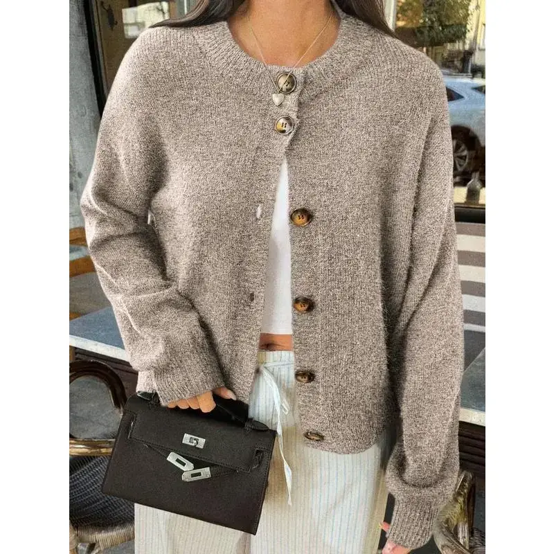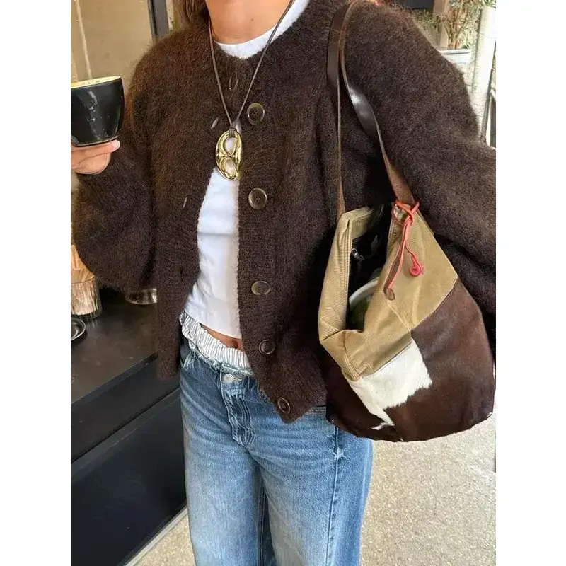 Women's Premium Vintage Brown Cardigan Sweater 2025 New Thick Soft Cozy Open Front Knit Elegant Solid Color V-Neck Sweater Front Chunky Cardigan