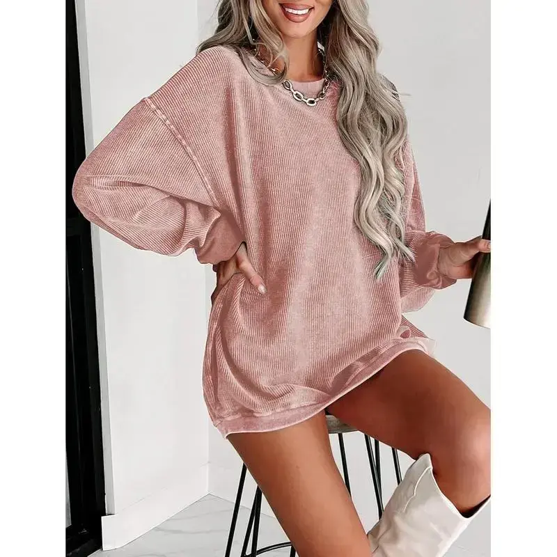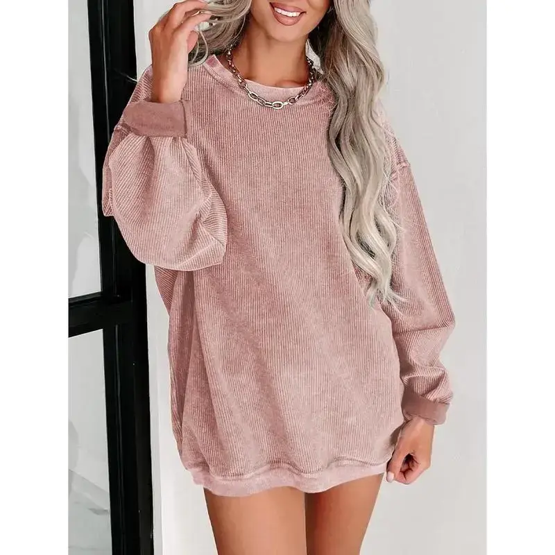 Women's Crewneck Oversized Corduroy Sweatshirt ✨ Elevate your casual style with this Women's Crewneck Oversized Corduroy Corded Sweatshirt. Perfect for layering or solo wear, this pullover tops offer a relaxed fit. Ideal for everyday wear, it combines comfort with a chic look. 🌟 Important Sizing Tip Versatile and Casual