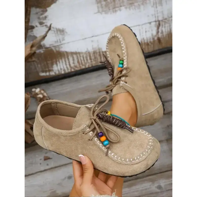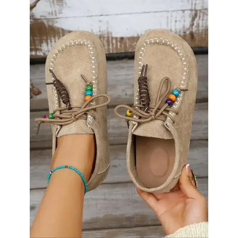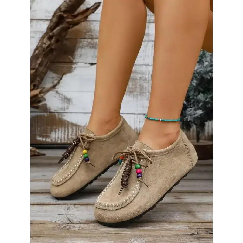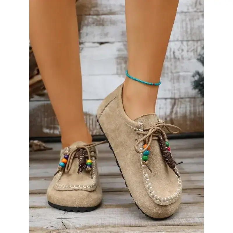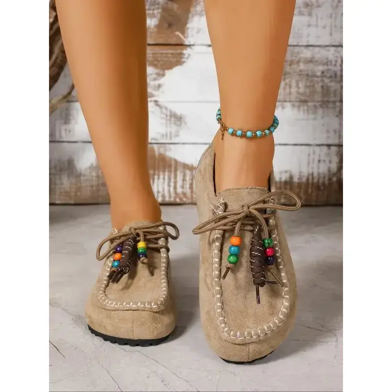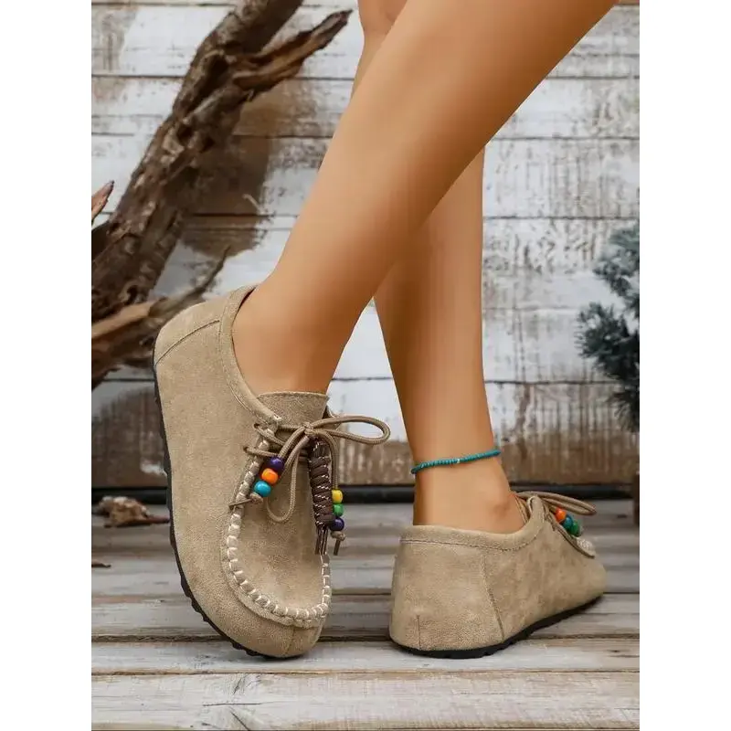 2025 Boho Beaded Tassel Moccasins for Women – Soft Suede Slip-On Loafers with Arch Support, Casual Vintage Comfort Walking Flats
