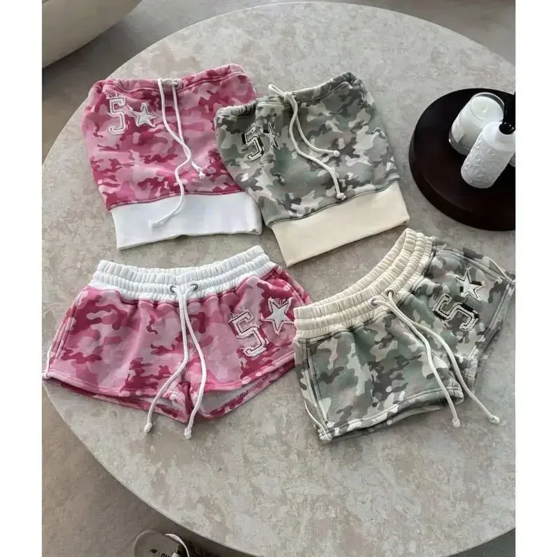 Hip-Hop Short Cardigan Hoodie Sweatshirt Street American Style Loose Long Sweatpants Set Womenswear Clothes Suits Gamis Streetwear