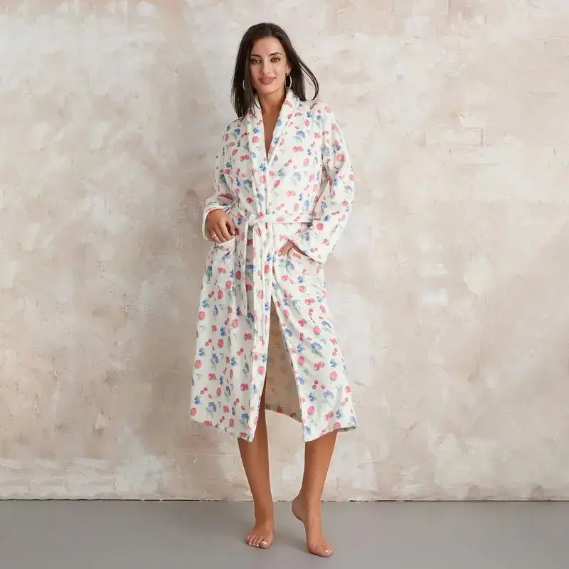 Size(cm) S Length: 114 Bust: 120 Sleeve Length: 49 M Length: 115 Bust: 124 Sleeve Length: 50 L Length: 116 Bust: 130 Sleeve Length: 51 ? Size(inch) S Length: 44.88 Bust: 47.24 Sleeve Length: 19.29 M Length: 45.28 Bust: 48.82 Sleeve Length: 19.69 L Length: 45.67 Bust: 51.18 Sleeve Length: 20.08 ? Specification: Name: Couples Dressing Gown Flannel Robe Gender: Women Material: 35% Cotton + 65% Polyester Collar: Shawl Collar Sleeve Length: Long Sleeve Pattern: Floral Print Size: S/M/L ? Package Contents 1 x Robes with Belt ? Friendly Tips: 1. Please kindly allow a 2-3% difference according to manual measurement. 2. Please check the measurement chart carefully before you buy the item. (1 inch = 2.54 cm) 3. Please note that a slight color difference should be acceptable due to the light and screen. Thanks. ? Promise If the product has any quality problems, please feel free to contact us, we will help you solve the problem as quickly as possible.