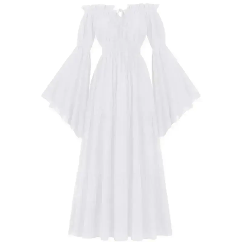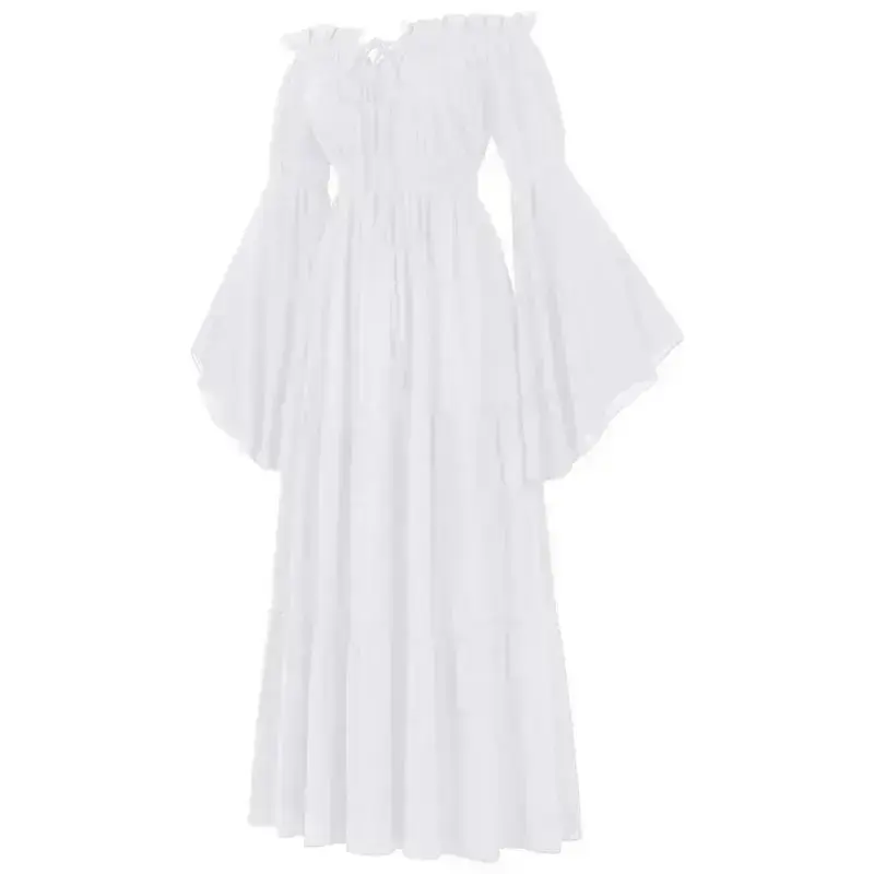 ??Women's Renaissance Irish Dress ?Discover the charm of the Women Renaissance Irish Dress!This off-shoulder medieval peasant pirate costume wench retro gown features a smocked waist design.Perfect for traditional basic ivory minimalist summer outfits.Ideal as a sundress, it offers a ruffled silhouette.Embrace the essence of historical fashion with this maxi long women's wear piece. ??Key Features Off-shoulder design for a unique look. Smocked waist enhances the silhouette. Ruffled detailing adds a touch of elegance. Suitable for summer wear, offering comfort and style. Ideal for those who appreciate traditional basic ivory fashion. ??Style and Versatility This dress is versatile for various occasions. Pair it with your favorite accessories to complete the look. The minimalist design ensures it complements any setting. Enjoy the blend of history and modern fashion with this women's maxi long dress.