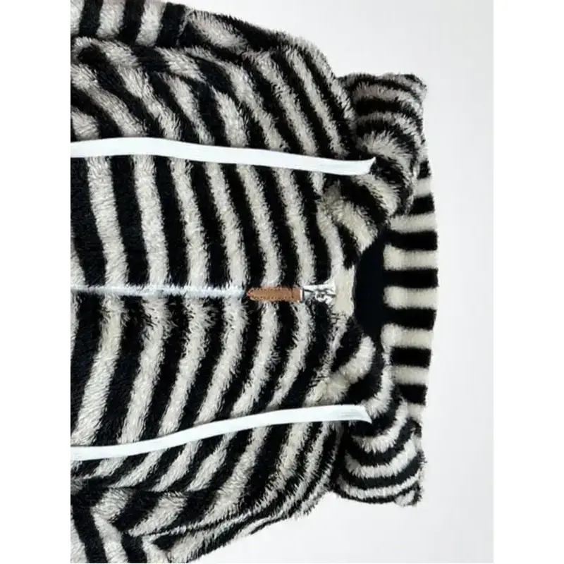 Striped Plush Hoodie Jacket, Casual Fleece Lined Coat with Drawstring, Long Sleeve Winter Outerwear for Women & Men