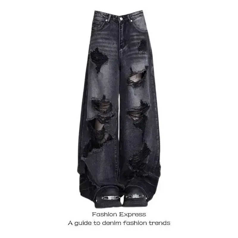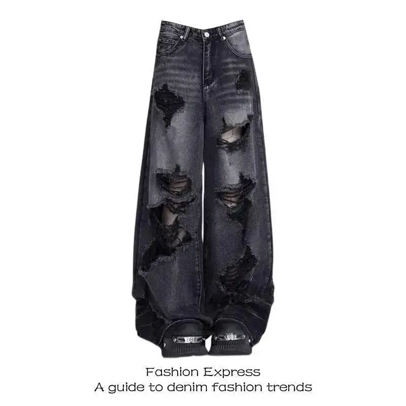 American High Street Black Ripped Wide-leg Jeans For Women In Autumn And Winter Hot Niche High-hot New Style Pants White