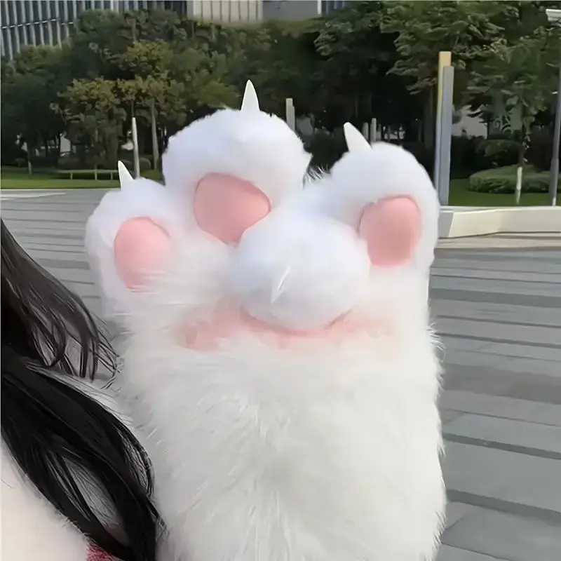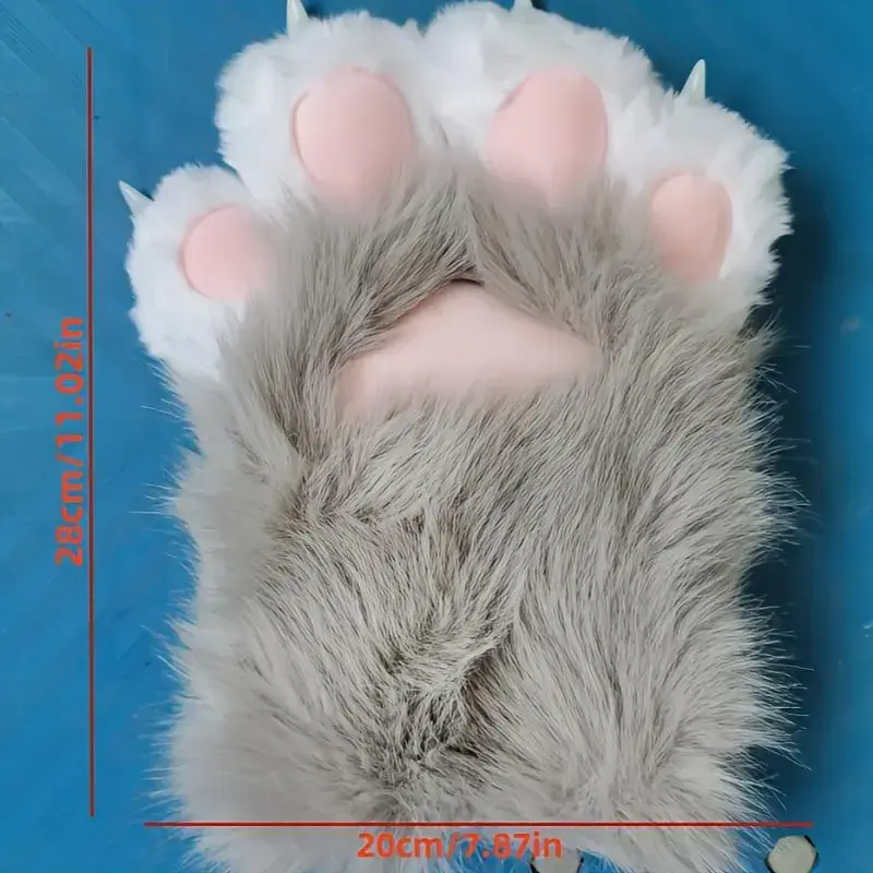 Soft Polyester Adorable Plush Cat Paw Gloves - Perfect for Cosplay & Stage Performances