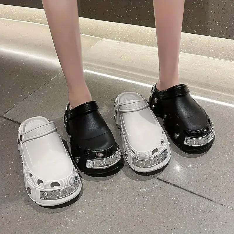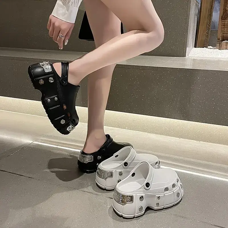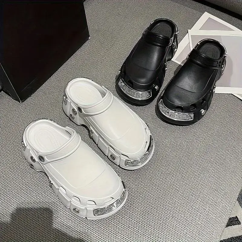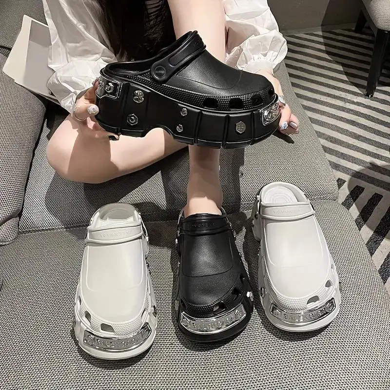 StylishPunkMetallicStuddedClogs-Soft,Non-Slip,PlatformEVASoles,ComfortableSlidesforWomen-Trendy,Chic,andEasytoWearShoeWalkingShoes