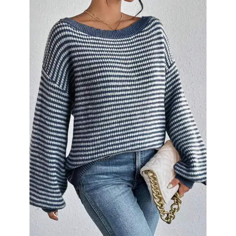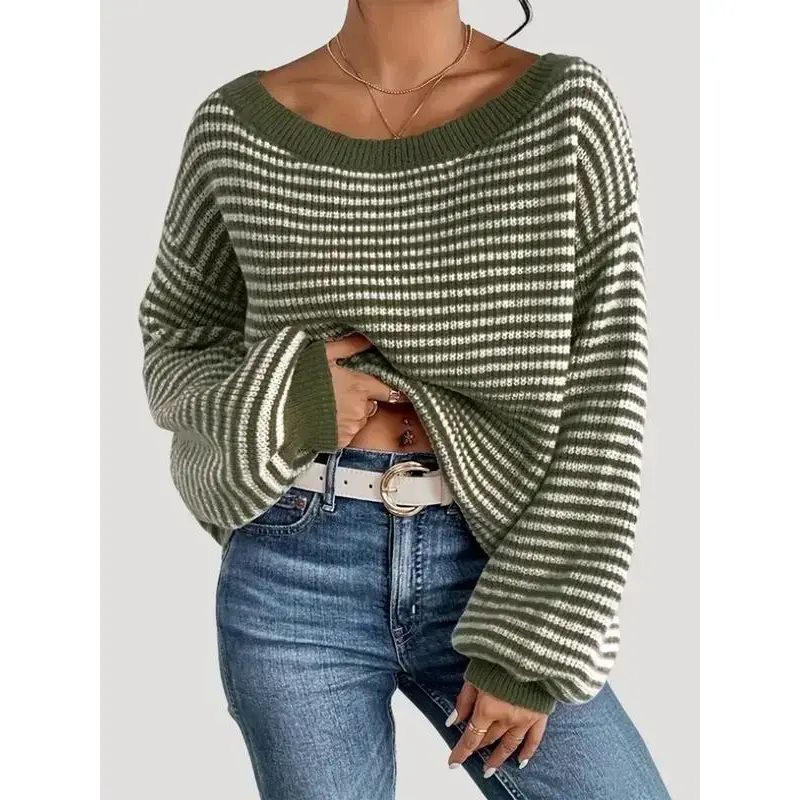 Women's Oversized Striped Knitted Sweater, Off Shoulder Long Sleeve Sweaters, Fall 2025 Fashion Pullovers(gift) Casual Fit