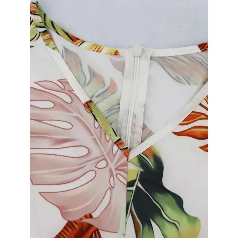 【Belted Feature】:The tie front and belted waist provide a flattering silhouette, enhancing your shape and ensuring a comfortable fit throughout your outings. 【Inspiring Print】:An all-over leaf print adds vibrancy and a tropical feel, making this romper an eye-catching choice for beach vacations or casual outings. 【Batwing Sleeves】:Three-quarter batwing sleeves offer a unique touch, combining a relaxed fit with a chic look, allowing for easy movement during warmer days. 【Quality Weaving】:Crafted from woven materials, this romper ensures durability and breathability, making it ideal for hot summer days and outdoor activities. 【Easy Access】:Featuring a zipper for easy wear, this romper allows for quick changes, perfect for a spontaneous beach trip or a leisurely stroll.
