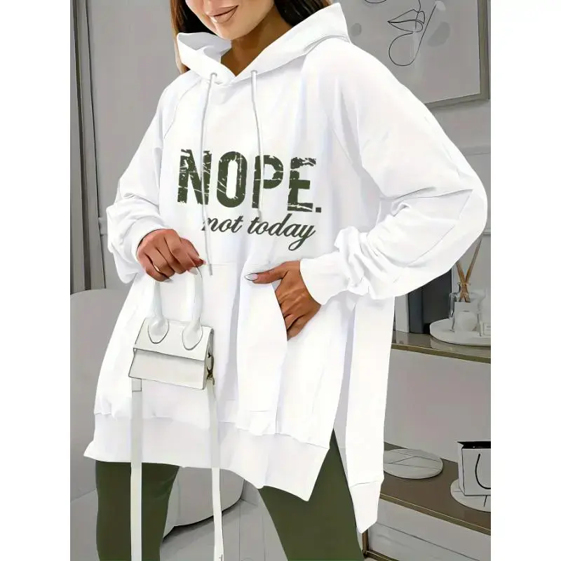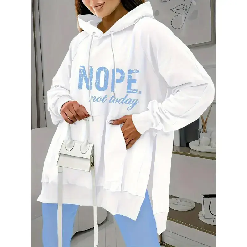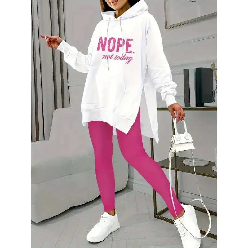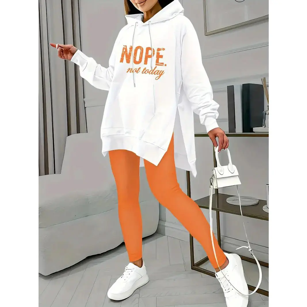 Women's Casual Two-piece Tracksuit with Letter Print Kangaroo Pocket Hoodie and Solid Skinny Leggings for Everyday Wear Elegant Slit Long Dress Slit Maxi Skirt Off-Shoulder Sweatshirt Sleeve Top and Pants Color Ruffle Trim Set