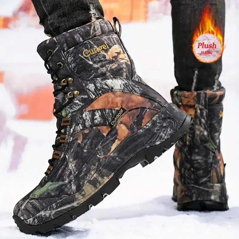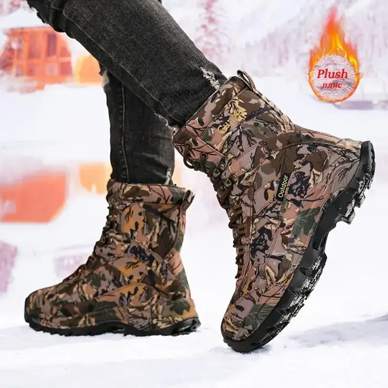 Men'S Camouflage Snow Boots, Winter Sports & Outdoor Hunting Footwear, Warm Plush Lined, Lace-Up Short Boots with Round Toe, Fabric & Canvas Upper, Rubber & MD Sole, for Hiking, Daily Wear & Winter Sports Boy Walking Shoes Closed Insole Black