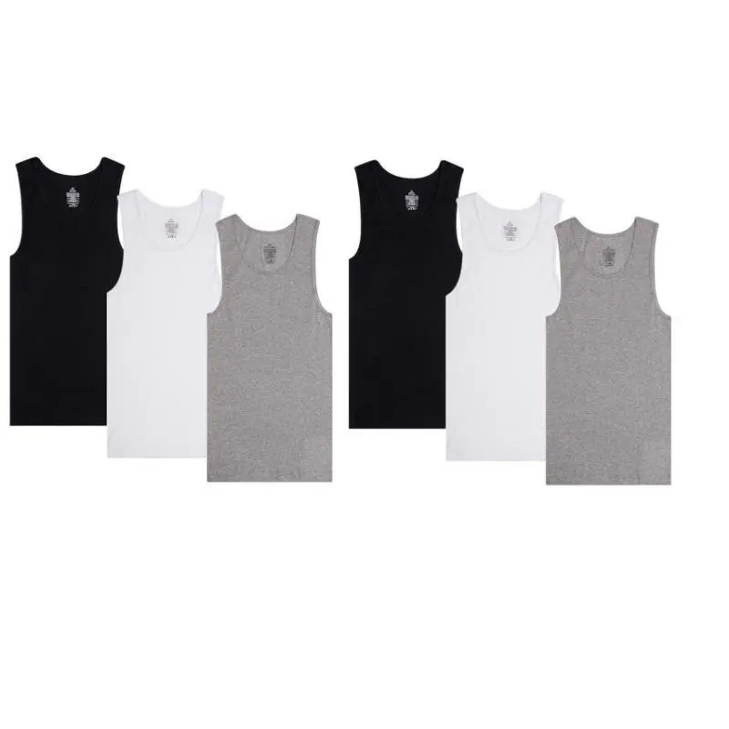 6 Pack Men's Cotton Ribbed Tank Top, Moisture Wicking, Lightweight, Breathable, A-Shirts Undershirt Plain Tropical
