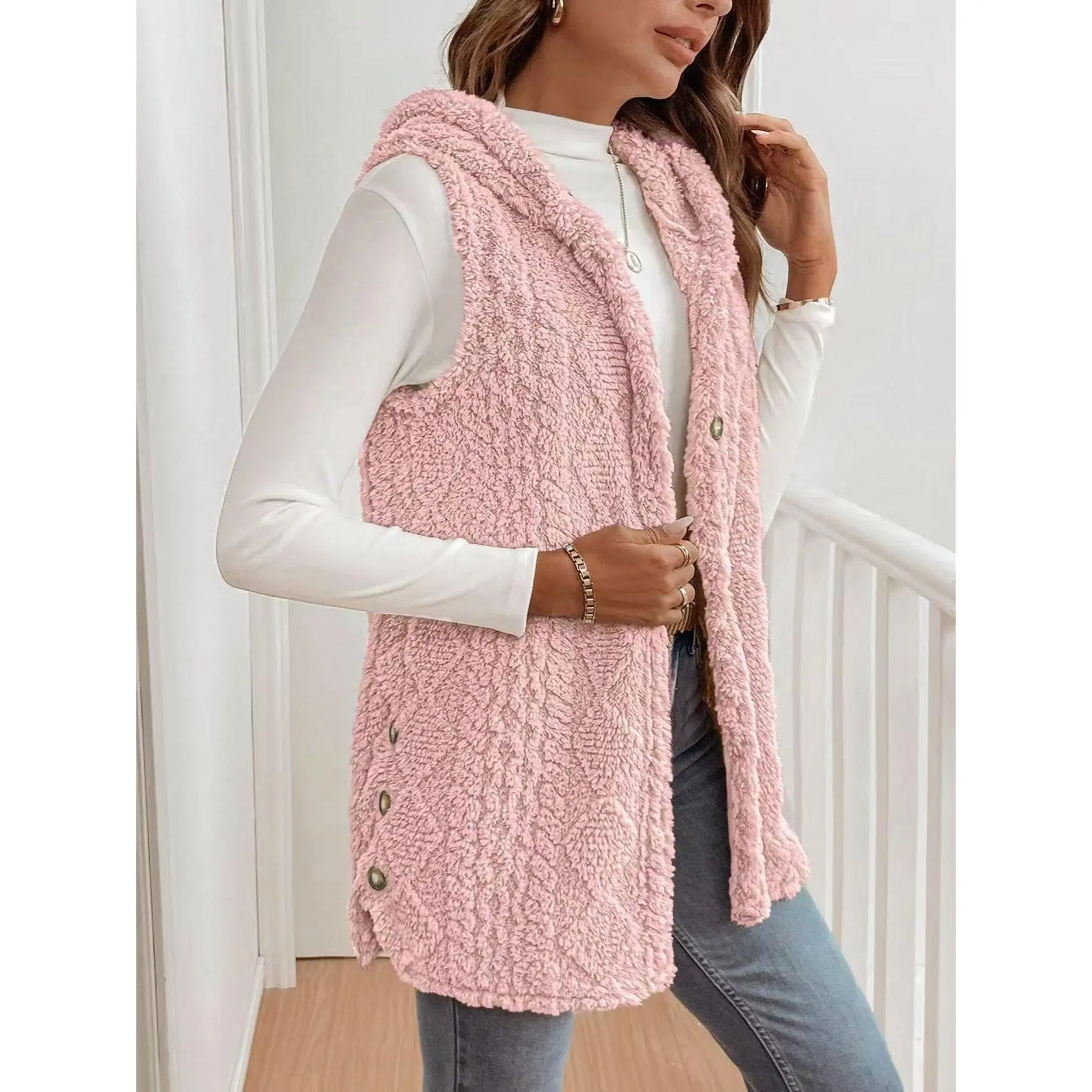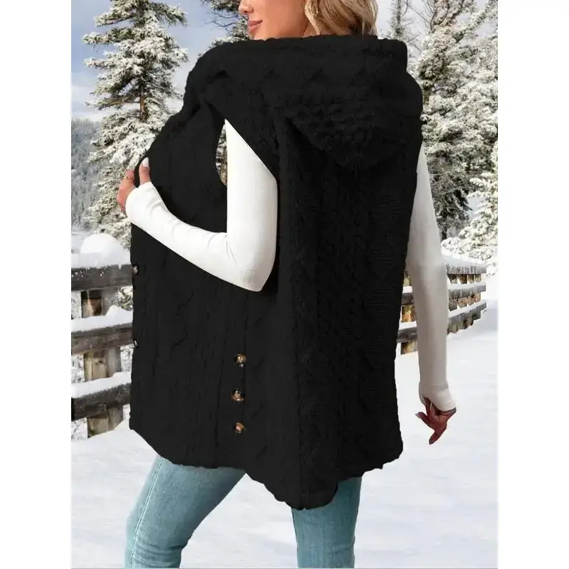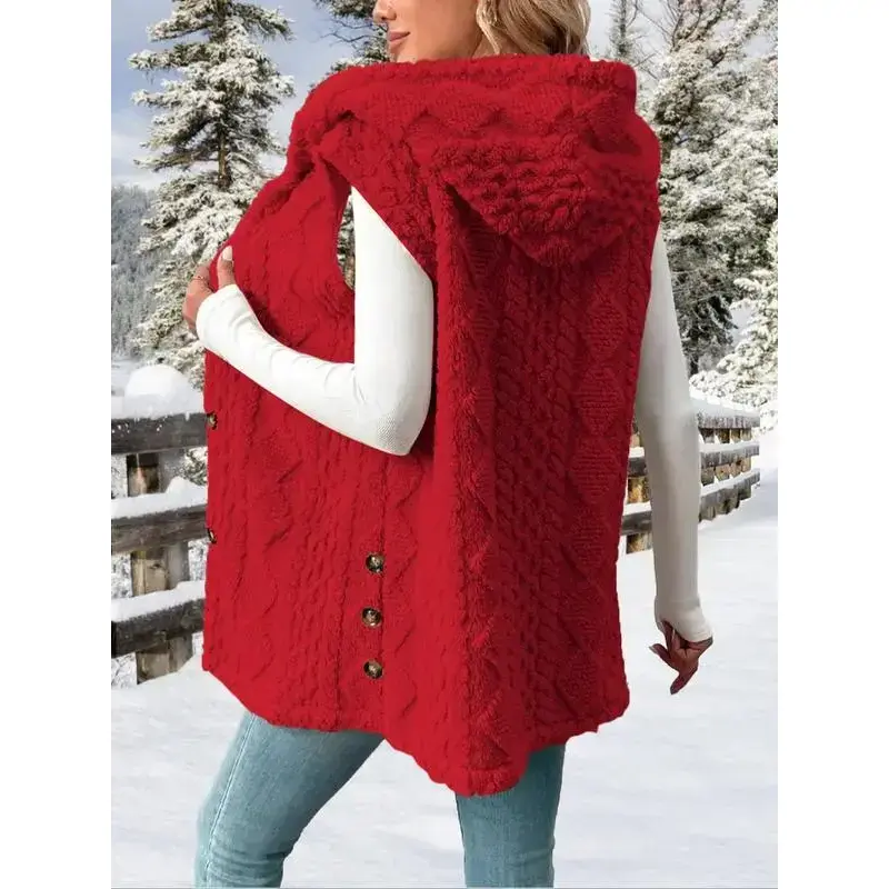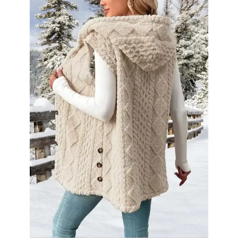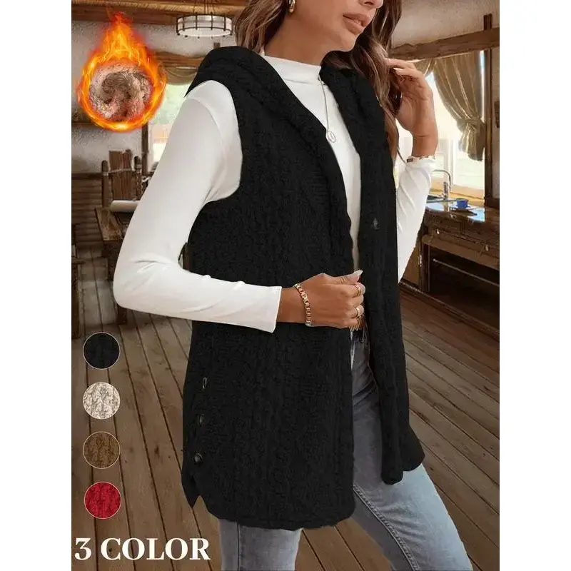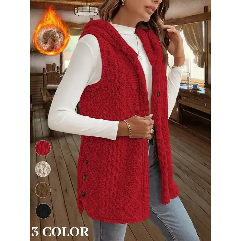 Women's Fuzzy Cardigan Coats Cozy Warm Sleeveless Hooded Sherpa Fleece Shacket Button Down Front Shacket Coat Thick Fleece Lined(gift)