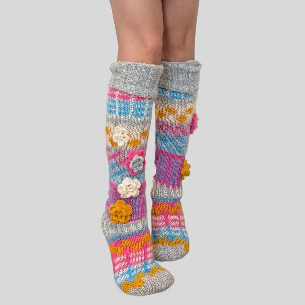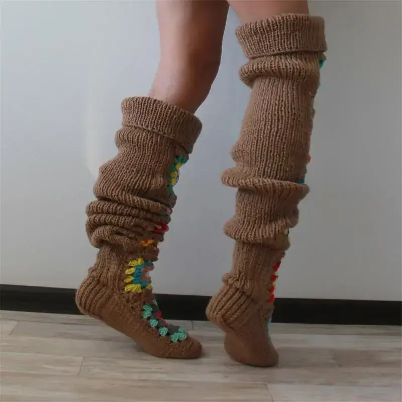 Autumn Winter Fashionable Extra Long Thigh Socks - Women's Ethnic Crochet Knit Stockings Over Knee Socks - Christmas Gift