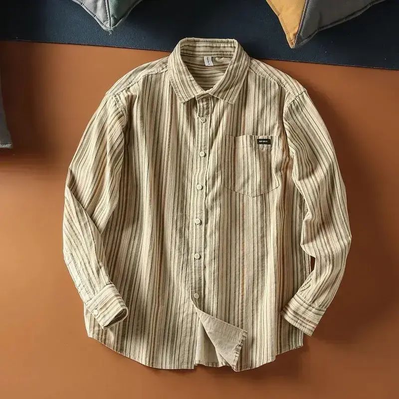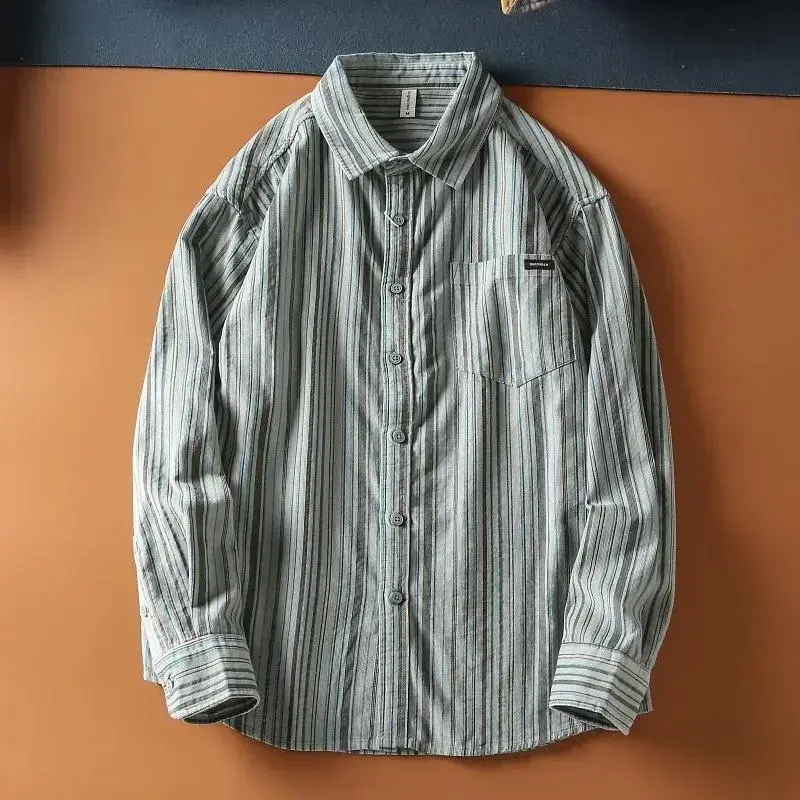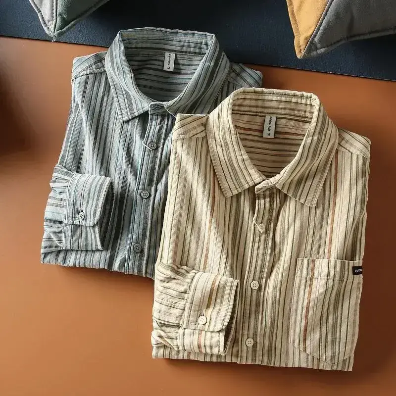 Japanese Striped Vintage Corduroy Shirt New Spring Autumn Men's Jacket Loose-Fit Casual Old-Fashioned Shirt Square Collar