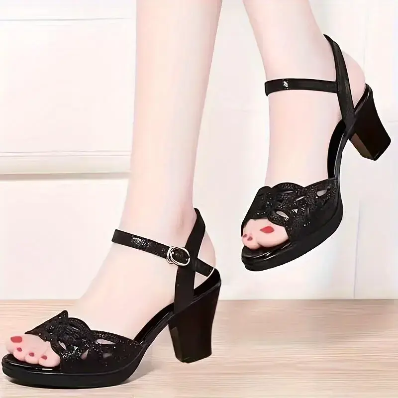 FashionAnkleStrapHighHeelSandalswithBuckleClosure-ShinyFabricOpenToeMaryJaneStyleChunkyHeelsSuitableforAllSeasonsHandWashableSolidColorPartyandEveningEventShoes
