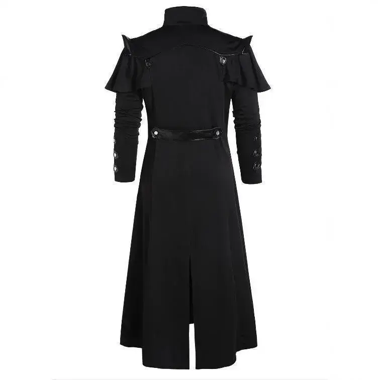 Medieval Renaissance punk leather long slit jacket, suitable for stage performances, photography, men's clothing