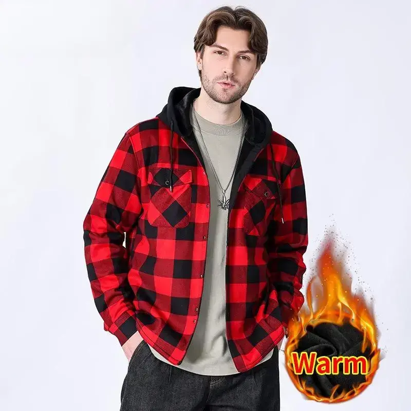 Winter Heavy Warm Sherpa Lined Fleece Plaid Flannel Jacket Men Plus Size S-3XL Big&Tall Mens Coat
