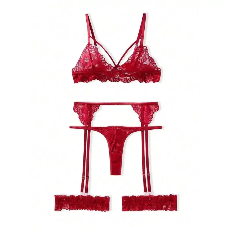 Classic Sexy 5pack Garter Lingerie Set ✨ Elevate your lingerie game with this Classic Sexy 5pack Cross Front Floral Lace Garter Lingerie Set. Featuring a cut-out, scallop style in a classic burgundy color, this set is perfect for those seeking a blend of elegance and allure. The plain pattern and bralette type add a touch of sophistication. 🌸 Fabric and Composition The set is made from 95% Polyamide and 5% Elastane, offering medium stretch and semi-sheer properties. This combination ensures comfort and a flattering fit. 🧶 This set makes an ideal gift, combining style and comfort in one package. Ideal for those who love classic, sexy lingerie. 🎁