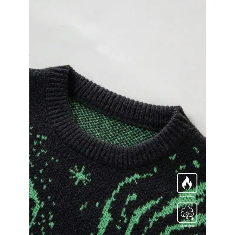 Unisex Galaxy Pattern Drop Shoulder Sweater, Casual Mens and Womens Crew Neck Long Sleeve, Sytlish, Knitwear, Graphic, Streetwear