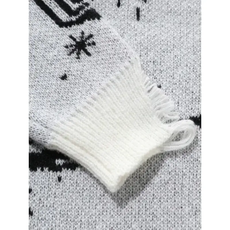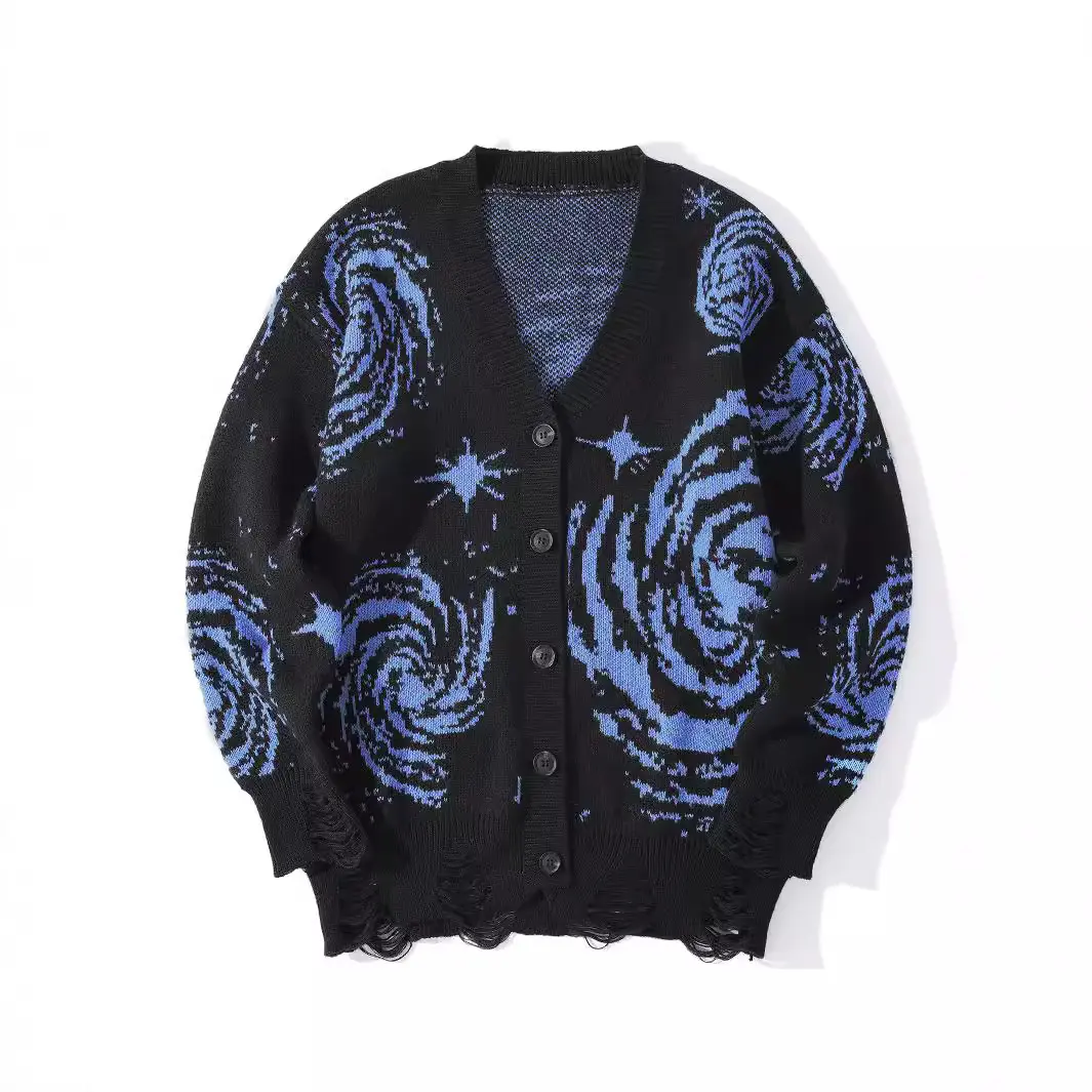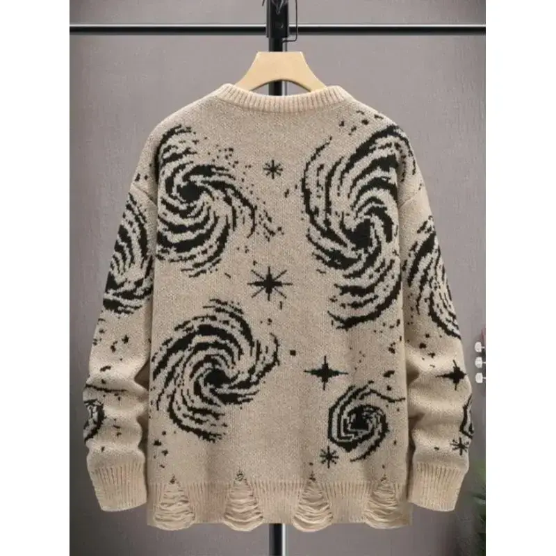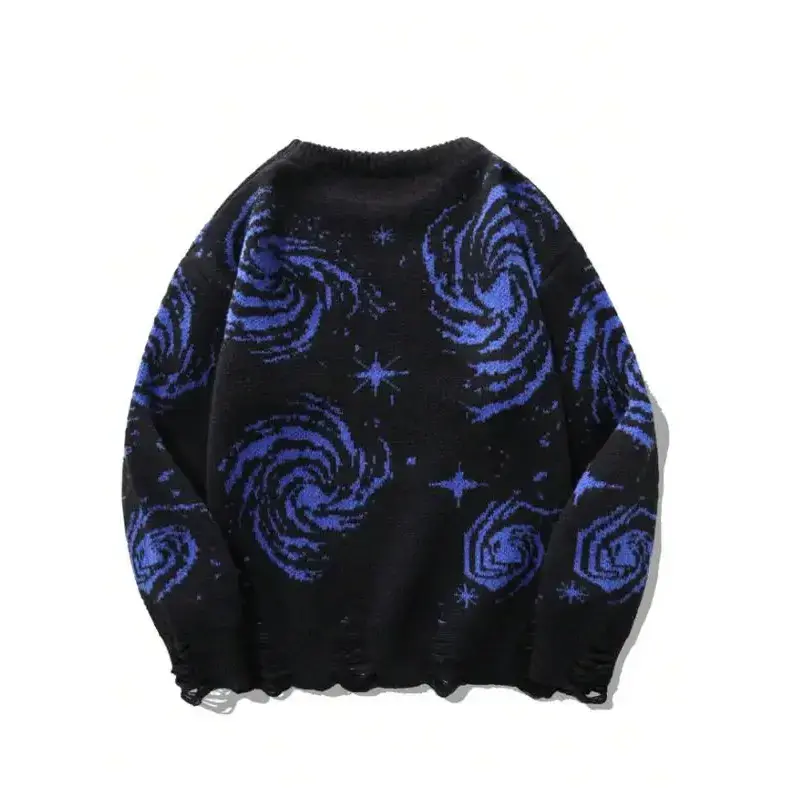 This Unisex Casual Starry Pattern Distressed Knit Sweater is a versatile addition to any wardrobe, suitable for both men and women. Featuring a unique Galaxy pattern, this sweater is perfect for casual occasions during Fall, Winter, and Spring. The Regular fit and Polyester material ensure both style and comfort. The Starry design adds a touch of flair to your look while maintaining a Casual style suitable for various holiday festivities like Christmas, Halloween, Thanksgiving, and New Year.