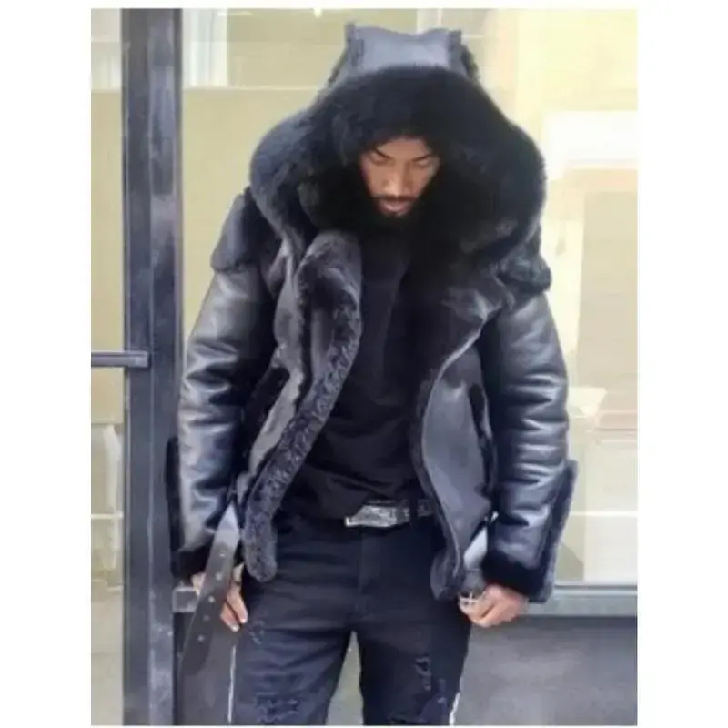 Men'S Faux Fur-Lined Hooded Winter Coat - Thickened Insulated Jacket with Full-Zip Closure, Short Length & H-Fit, Soft Pink Color, Casual Outerwear for Fall/Winter | Beltless Design, Easy-Care Fabric (No Maintenance) | Stylish Cold-Weather Outer Lay