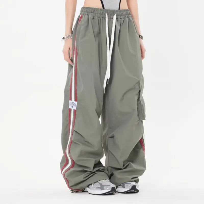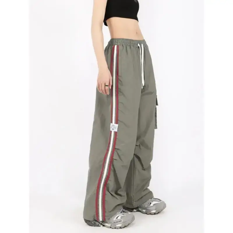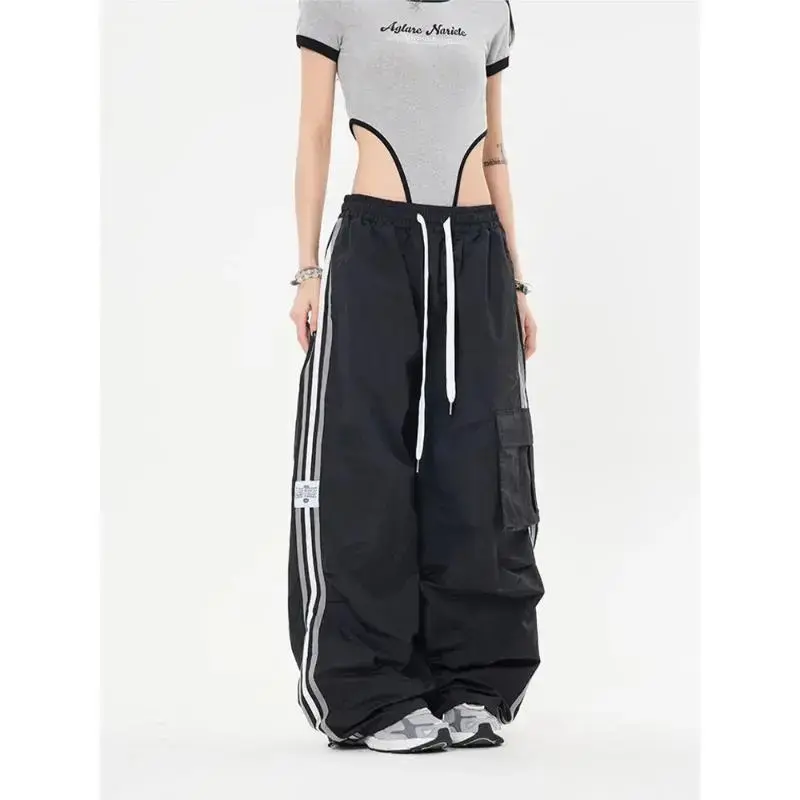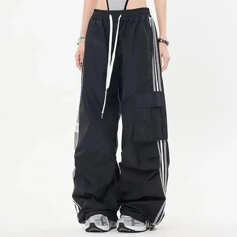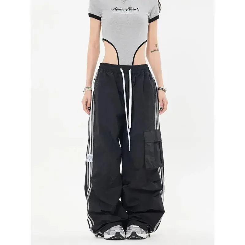 Y2K Kpop Cargo Pant Women Drawstring Pockets Wide Leg Chic Punk Pants Baggy Striped Sports Sweatpants Parachute Jogger Trousers Womenswear Bottom