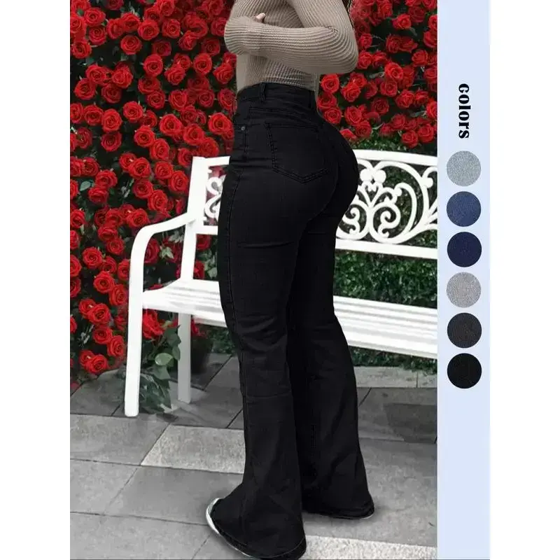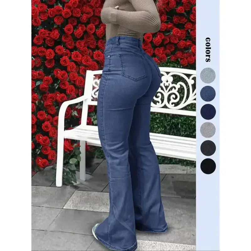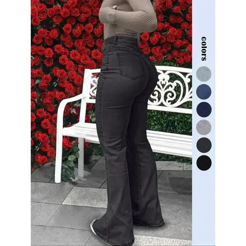 Women's Plain High Waist Flare Leg Jeans, Bell Bottoms Casual Pants Button Fly Pocket Design Bell Bottom Denim Trousers for Fall & Winter Flared Pants, Women's Bottoms for Daily Wear, Gift Set