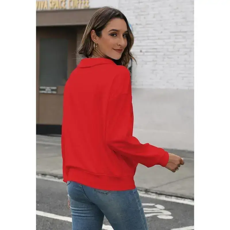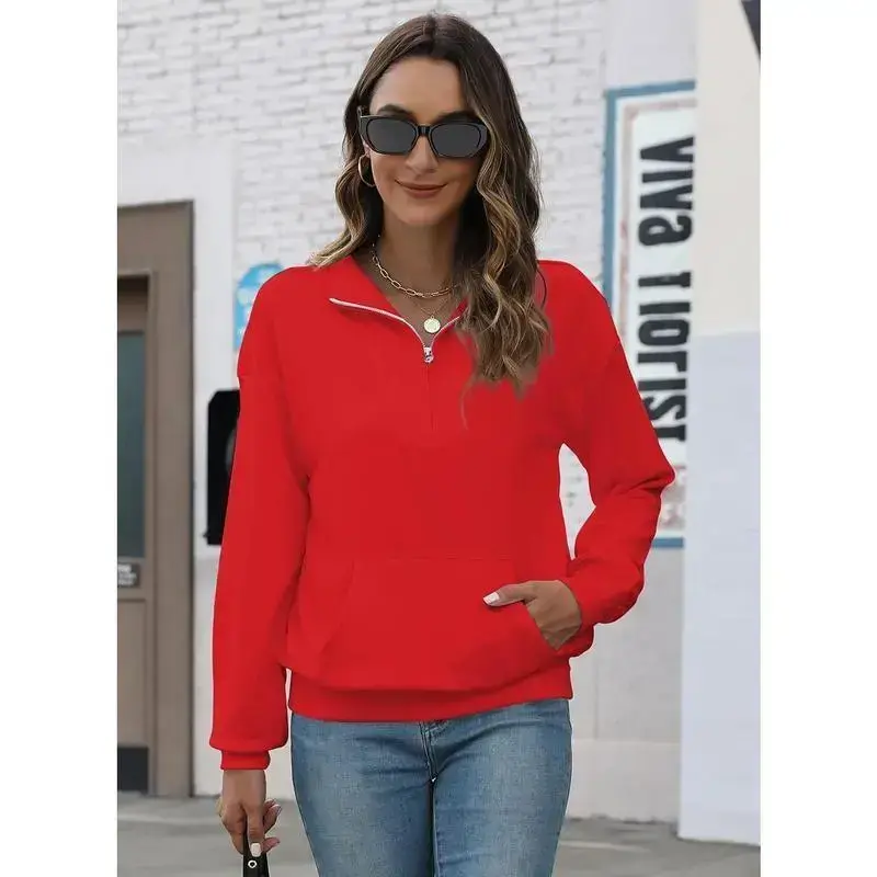 Womens Sweatshirt Oversized Quarter Zip Pullover Half Zip Long Sleeve Top