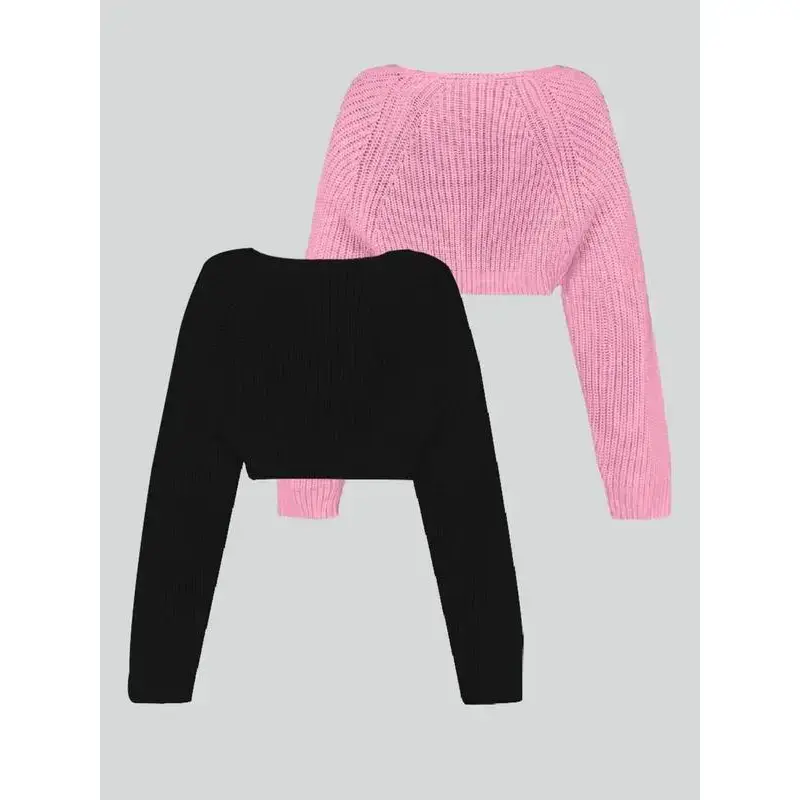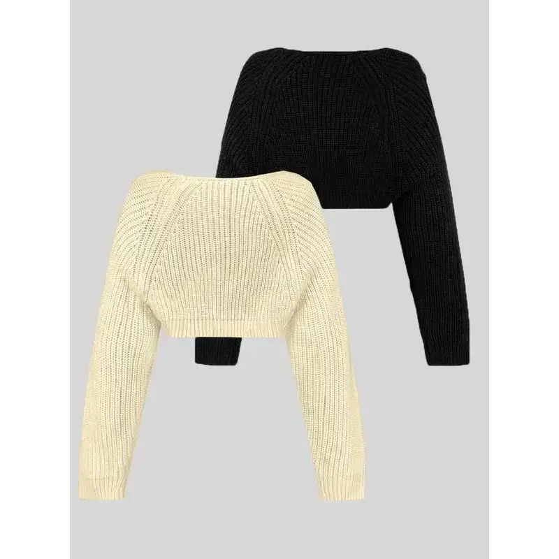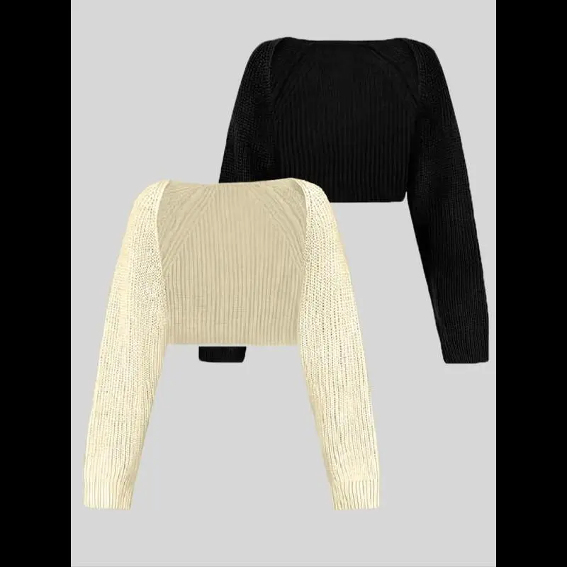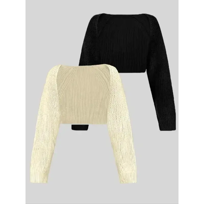 Women's Solid Color Raglan Sleeve Crop Shrug Cardigan, Casual Long Sleeve Open Front Knitwear for Spring & Fall, Fashion Women's Knit Clothing for Daily Wear